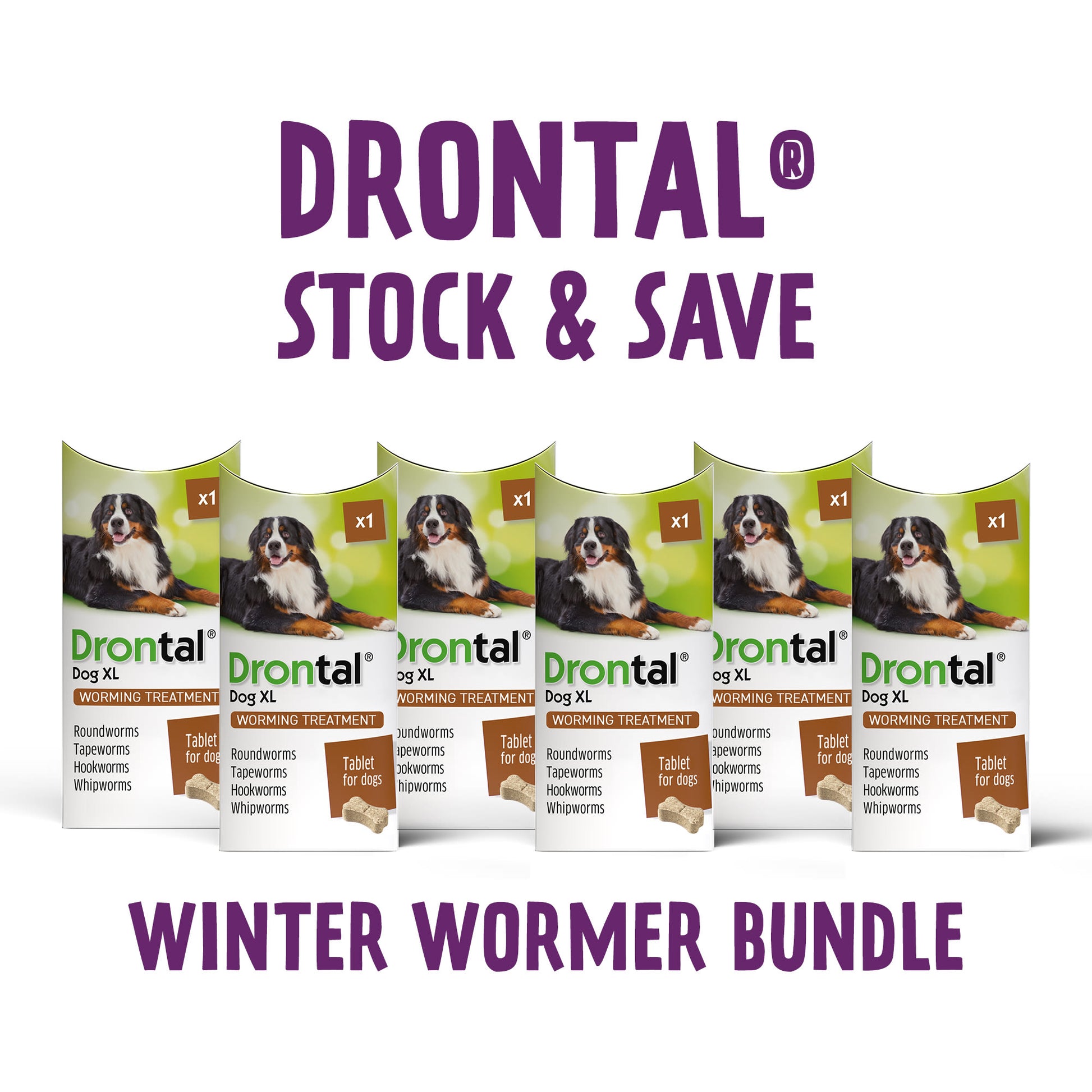 Dogs can pick up worms without you even realising it, as they often show few, if any, noticeable signs of infection and they can steal the valuable nutrients your dog needs to live a happy and healthy life. If left untreated, worms can lead to serious health complications for you and your family. Drontal Dog Tasty Bone XL Tablets are highly-effective and make worming easy. You might not know if your dog has intestinal worms, but you can trust Drontal to help combat them.