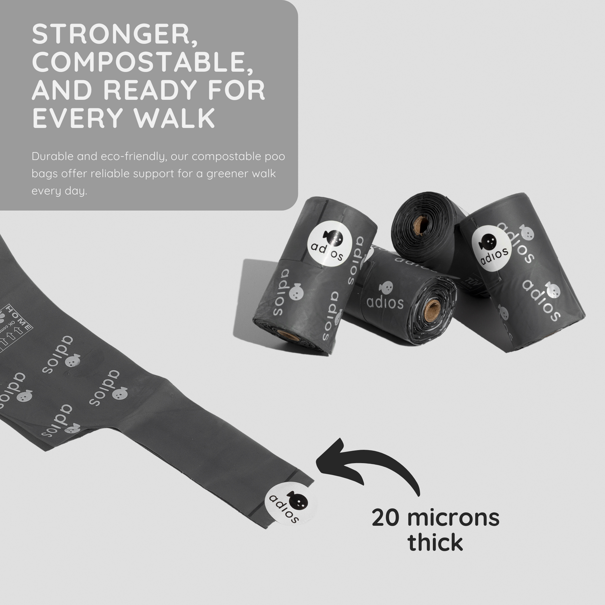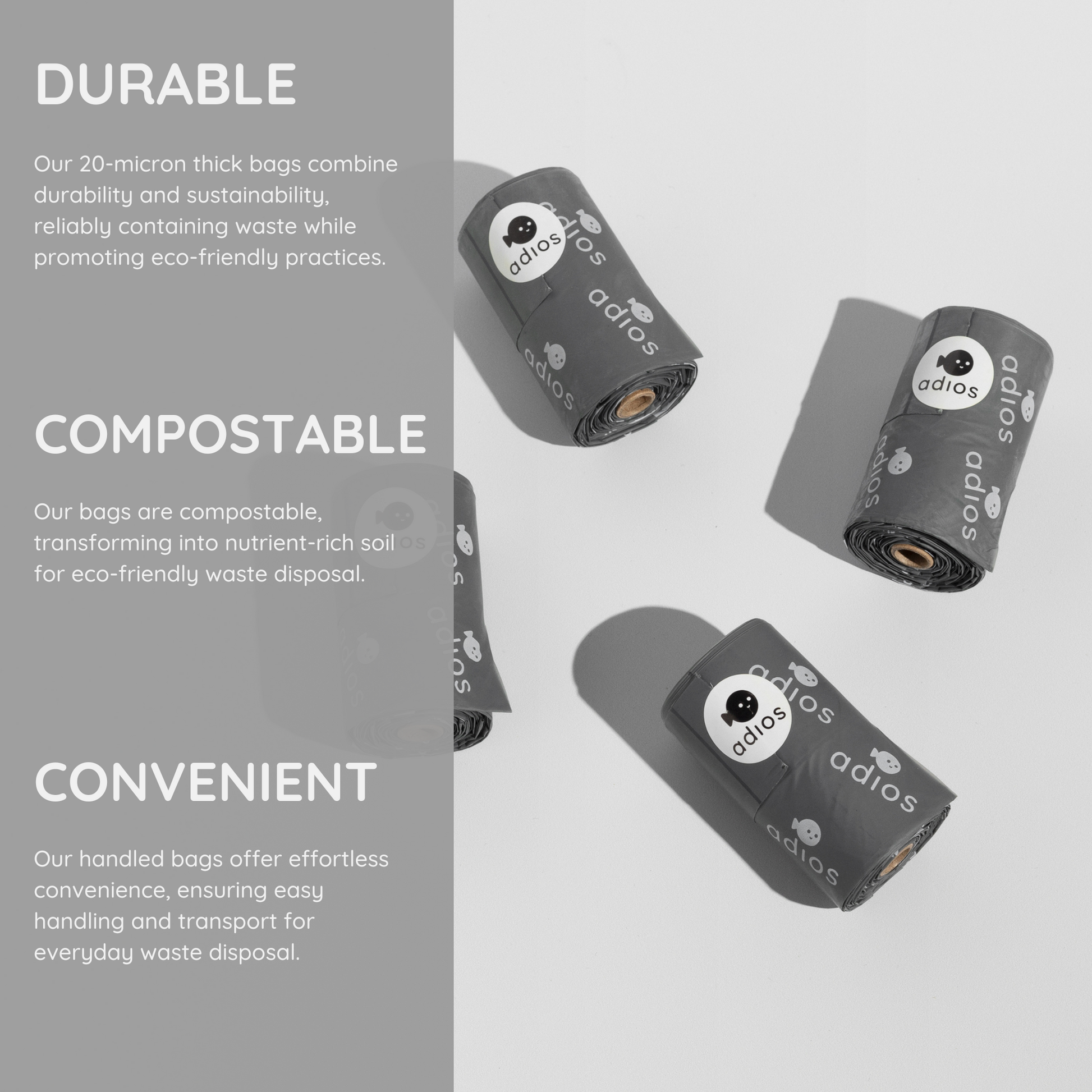 Zero waste, 100% Home-Compostable & Biodegradable Dog Poo Bags made from non-genetically modified cornstarch. Thick, strong, leak proof, easy to open, with handles, UK soured FCS kerb recycleable Packaging, 1% for the planet.