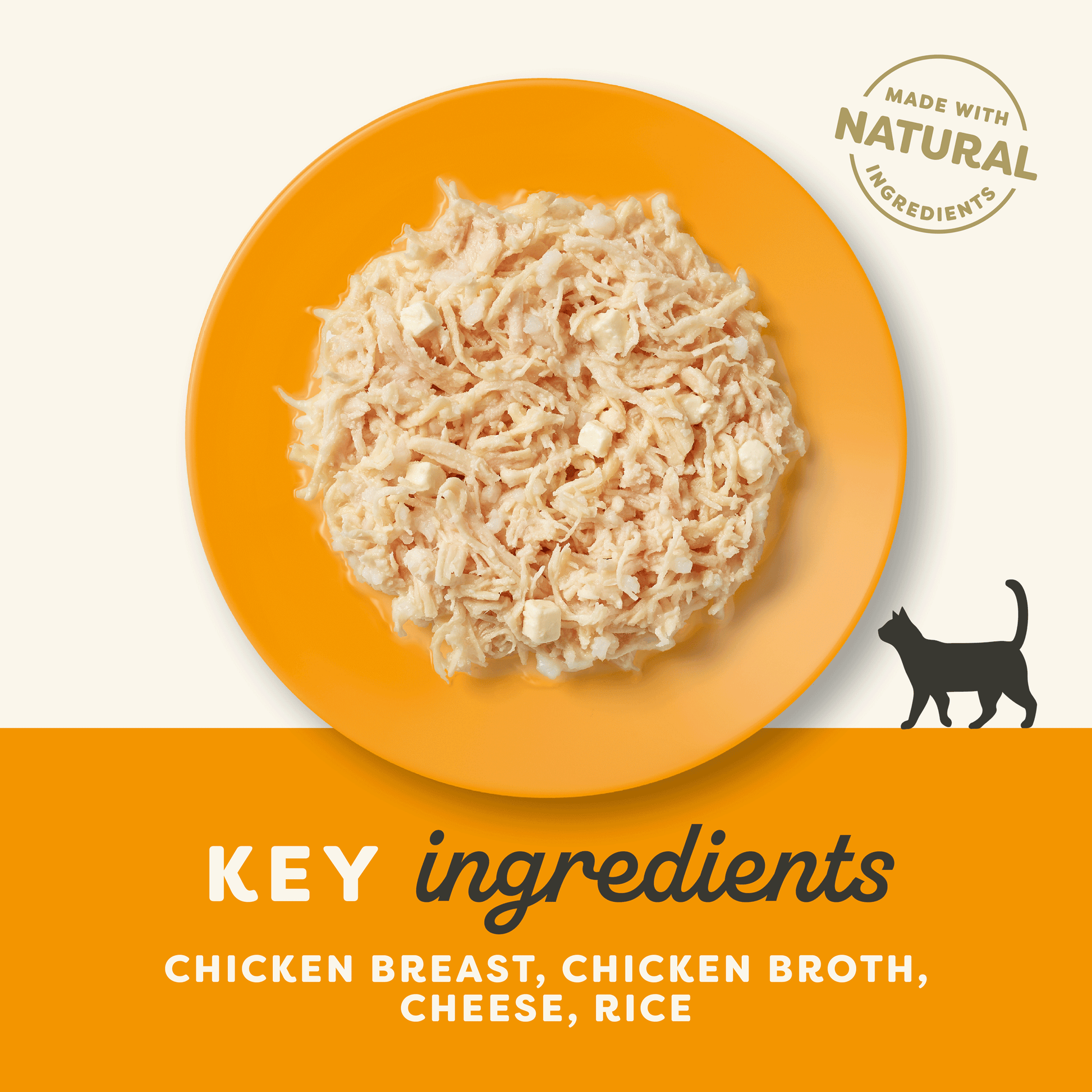 Composition: Chicken breast 70%, chicken broth, cheese 5%, rice.