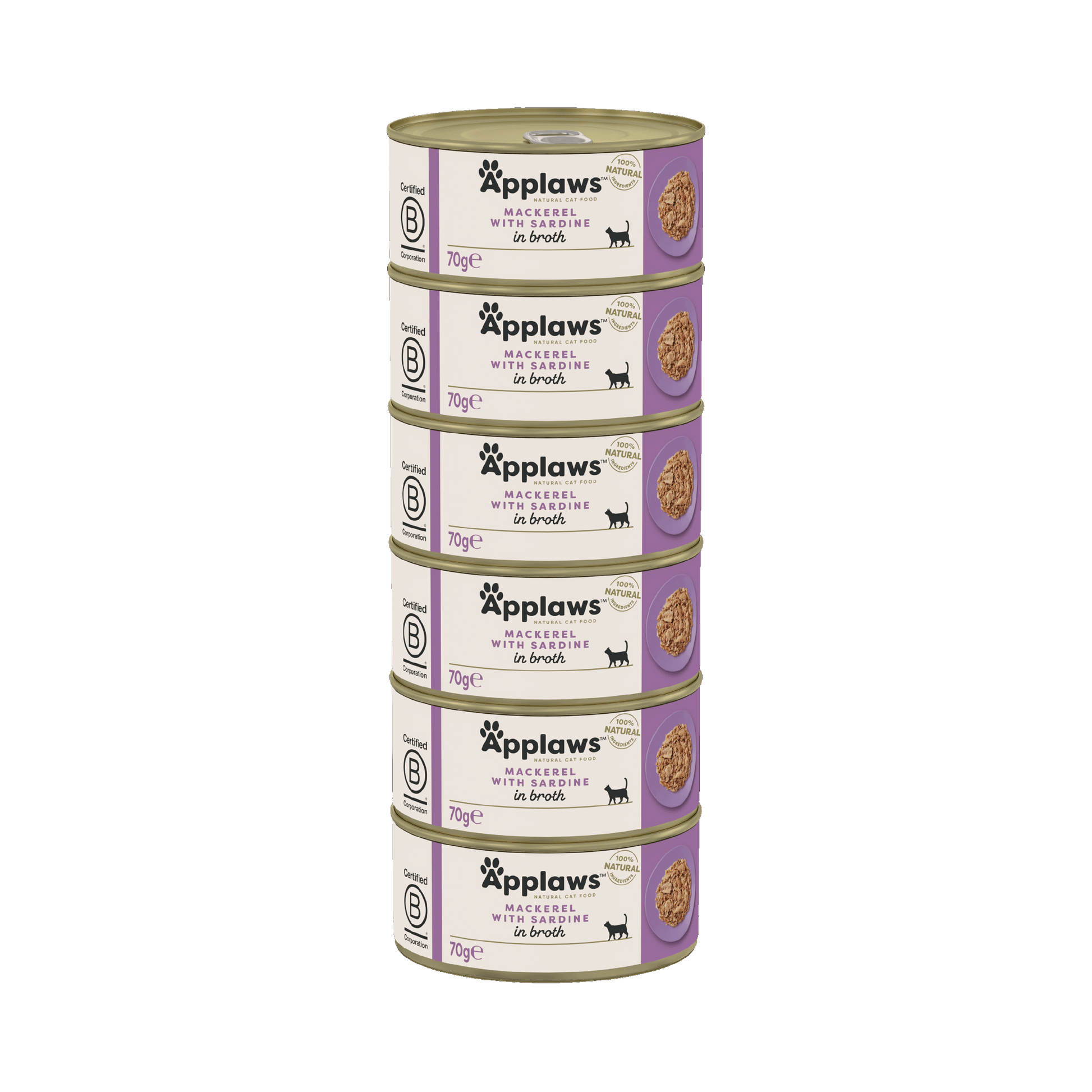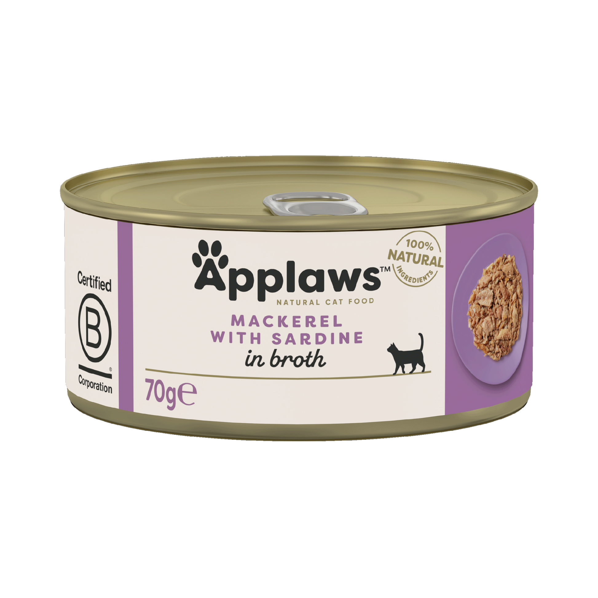 Applaws Mackerel with Sardine in Broth contains nothing more than the ingredients listed and is a 100% natural complementary pet food for adult cats. Feed alongside Applaws Complete Natural Dry food for a balanced diet. At Applaws, we believe that making pet food matters. It’s all we do. We believe and trust in the goodness of a food that starts with the highest quality ingredients. We call it natural simplicity.