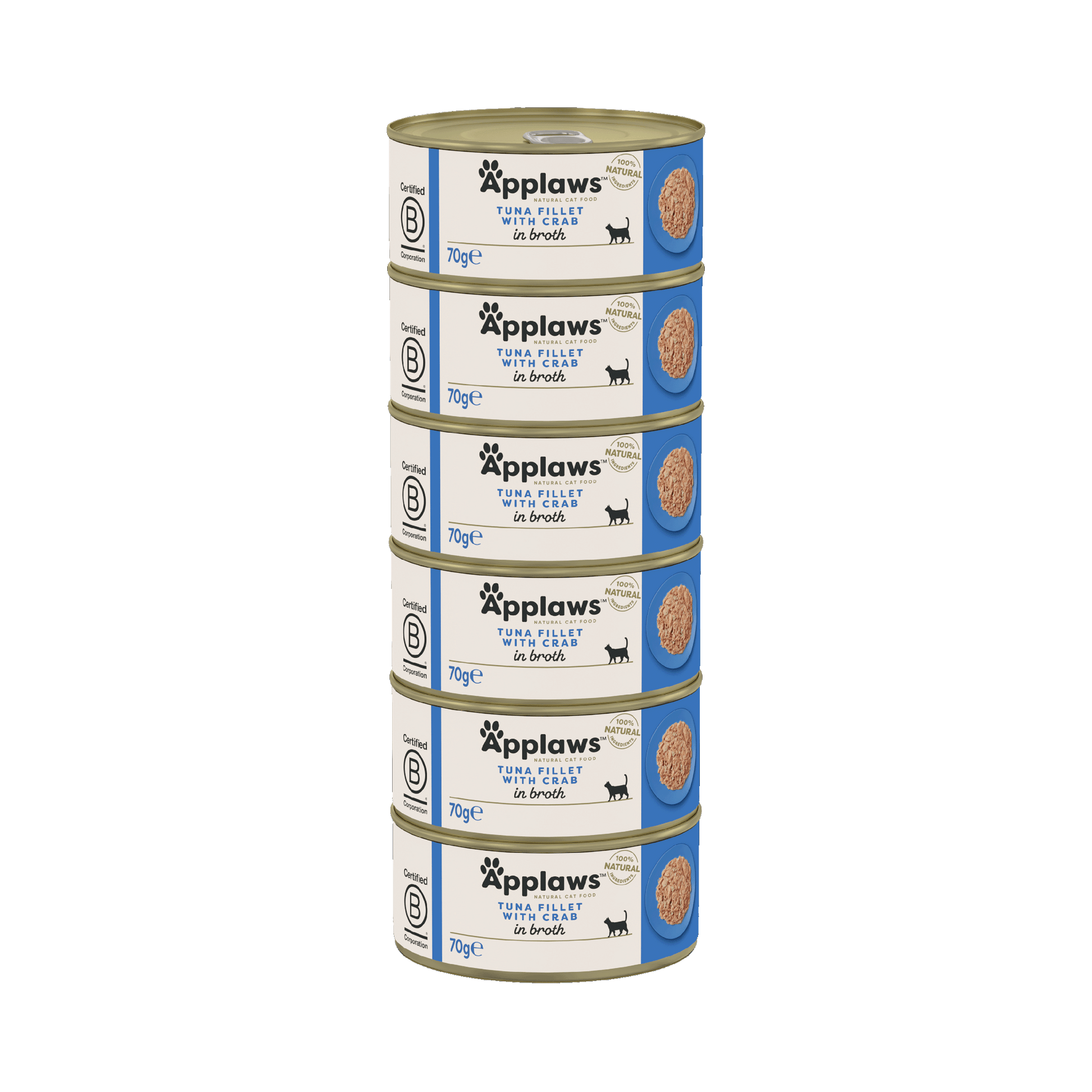 Applaws Tuna Fillet with Crab in Broth contains nothing more than the ingredients listed and is a 100% natural complementary pet food for adult cats. Feed alongside Applaws Complete Natural Dry food for a balanced diet. At Applaws, we believe that making pet food matters. It’s all we do. We believe and trust in the goodness of a food that starts with the highest quality ingredients. We call it natural simplicity.
