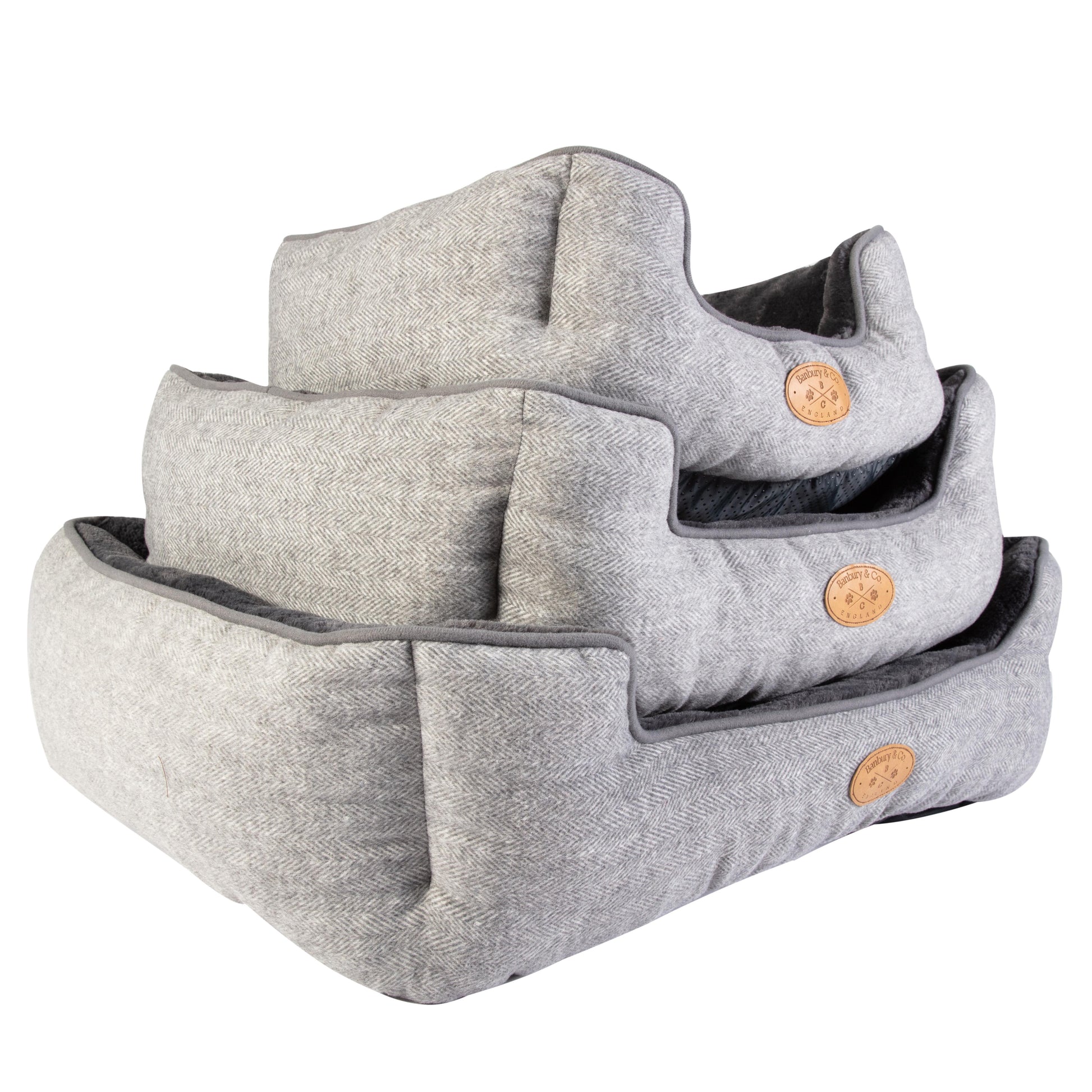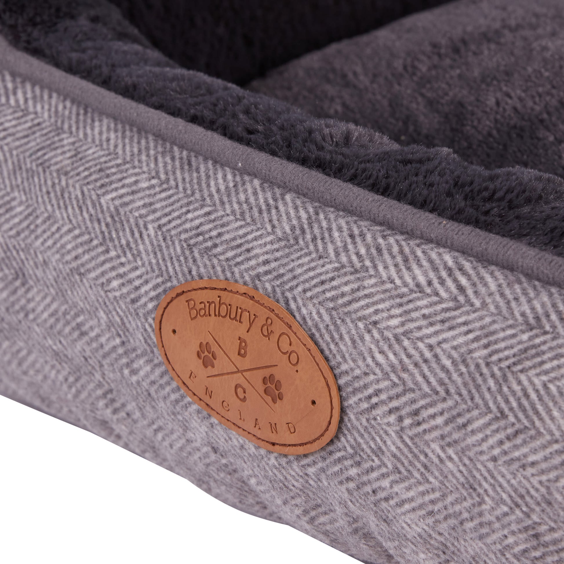 Turn your dog's nap time into the best part of their day with the Banbury & Co Herringbone Square Dog Bed. Its padded base relieves joint pressure, while tall sides create a secure, den-like space for relaxation. Whether your dog curls up or stretches out, this bed supports their neck and back, offering comfort for any breed or age.