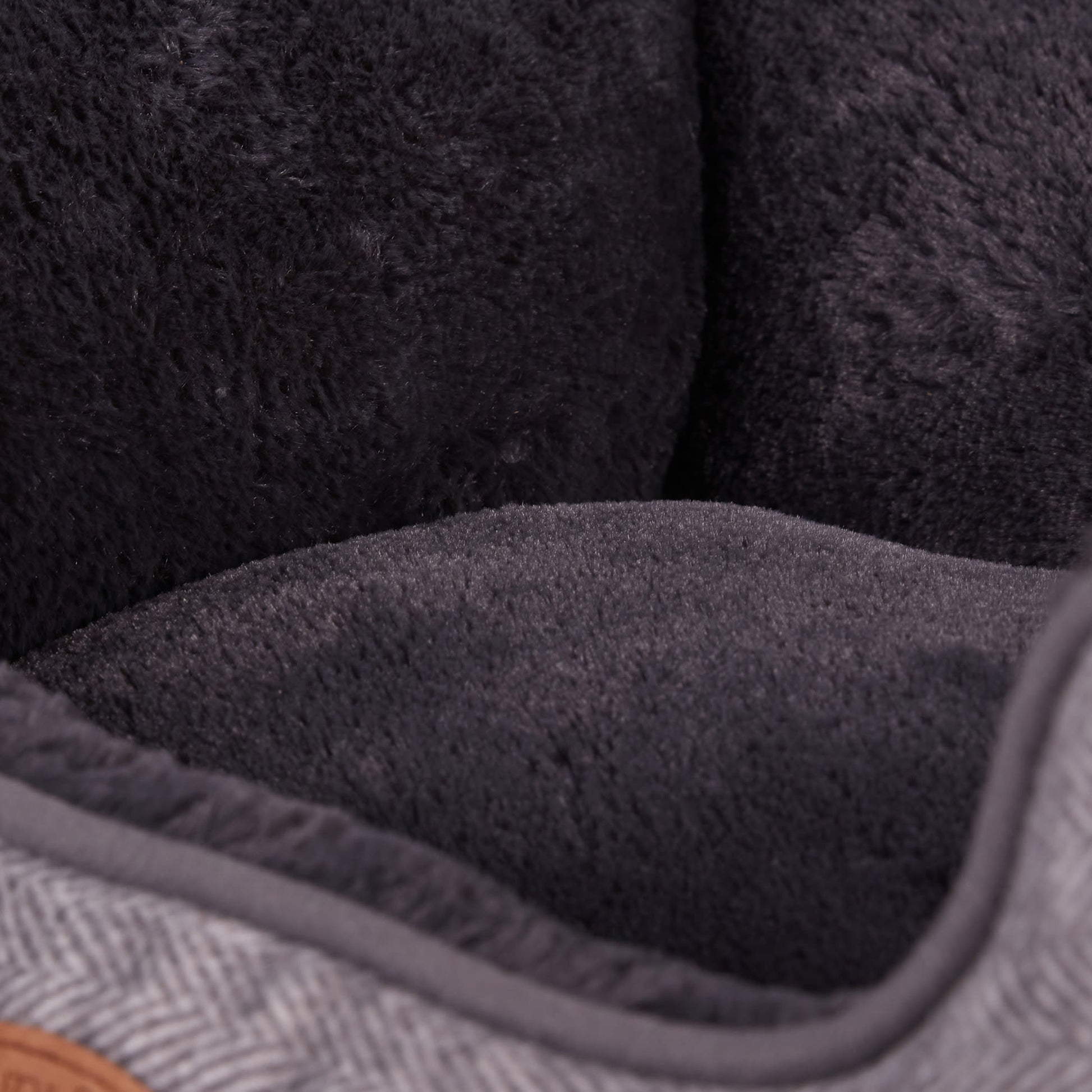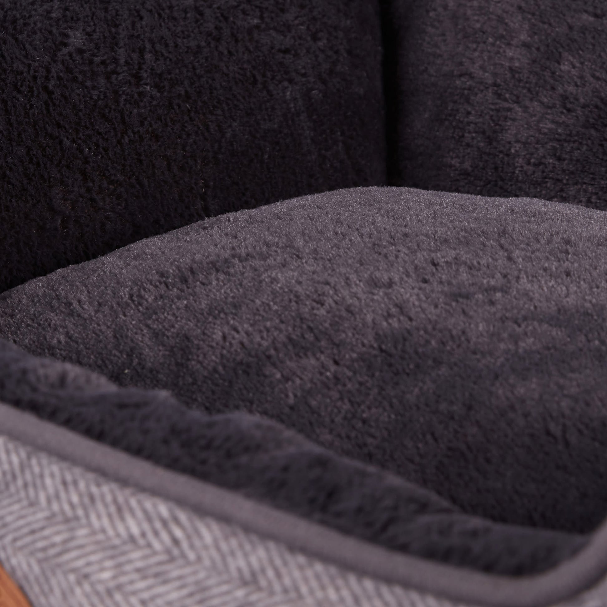 The stylish faux wool herringbone cover adds a modern touch to any room, while the soft faux fur inside provides a warm, comforting spot your dog will love. This bed soothes tired joints with gentle cushioning, helping your pup feel secure.