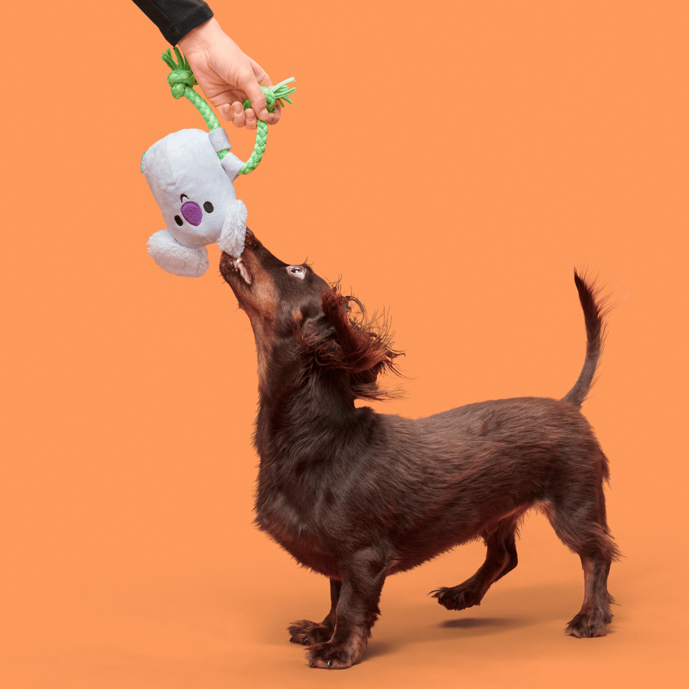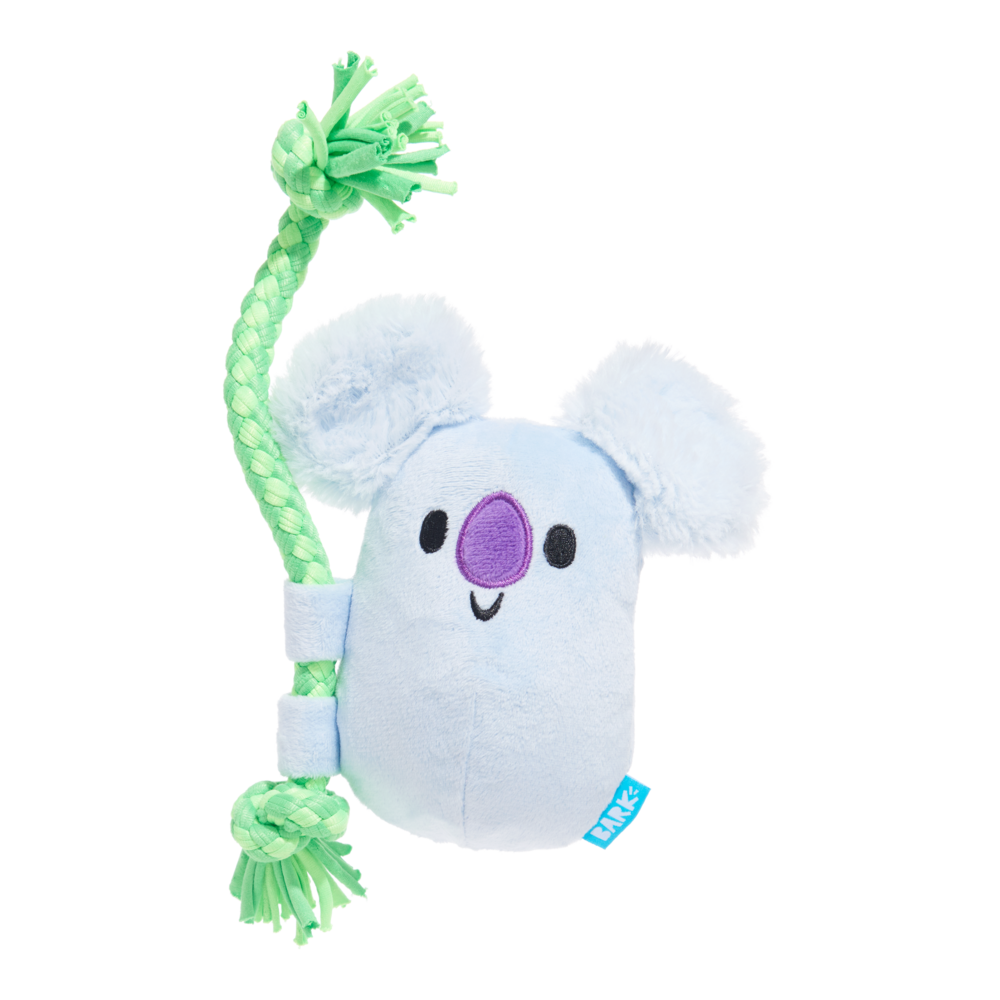Take playtime to new heights with this koa-uddly koala dog toy! This cuddly climber is ready to rope your pup into some intense koa-limbing action—just grab onto his t-shirt rope and hang on tight! Once you’re up in the treetops, the fun continues with his squeaker, crazy crinkle, and long, shreddable fuzz. Whether it’s a tug, a toss, or a good chew session, this koala is ready for an epic forest adventcha, mate!