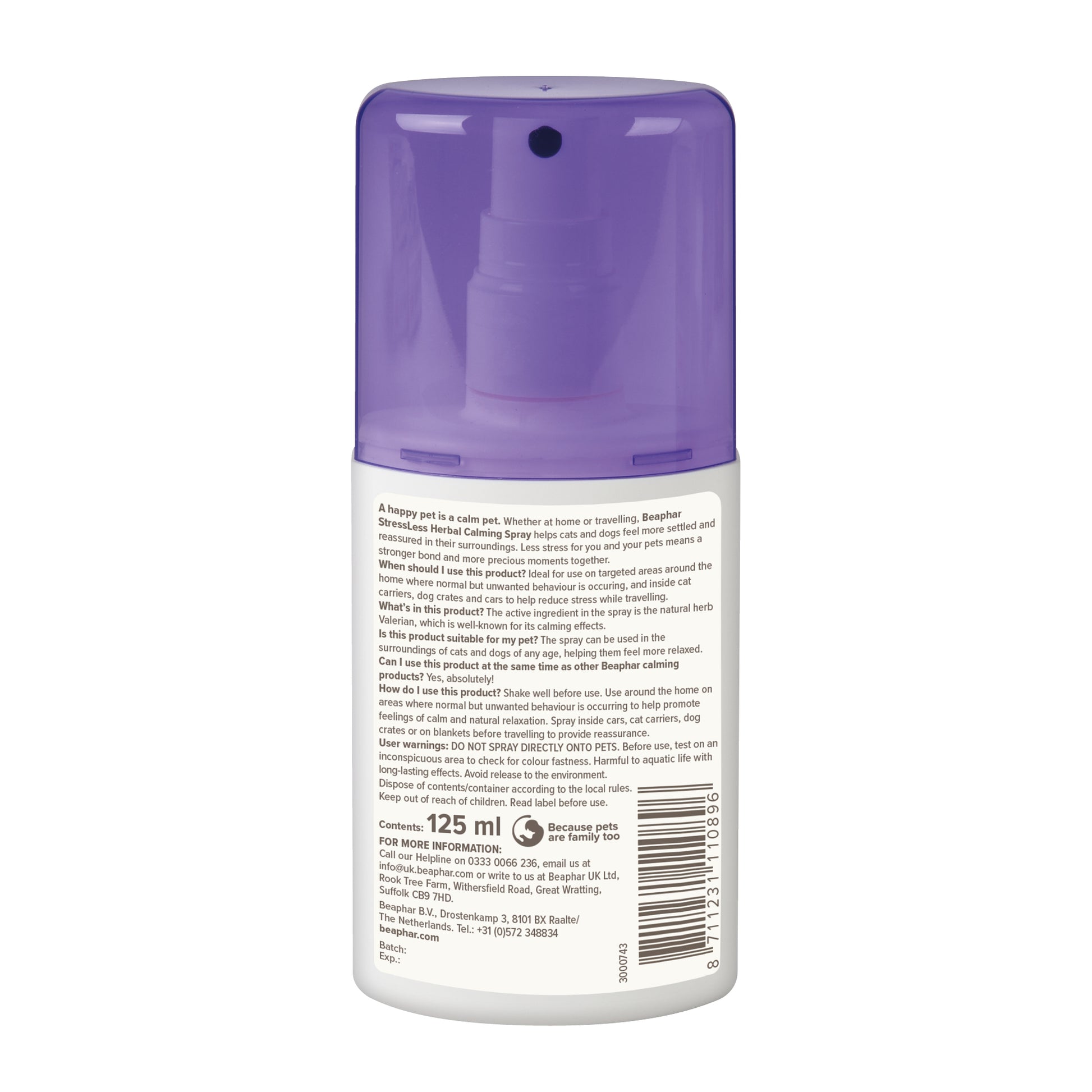 Beaphar Calming Home Spray is formulated with soothing Valerian to promote natural relaxation and feelings of calm, which can help cats to feel more settled in strange or stressful environments. Designed for use around the home, it can help to prevent the symptoms of distress and unwanted behaviour, including scratching, constant meowing and spraying.