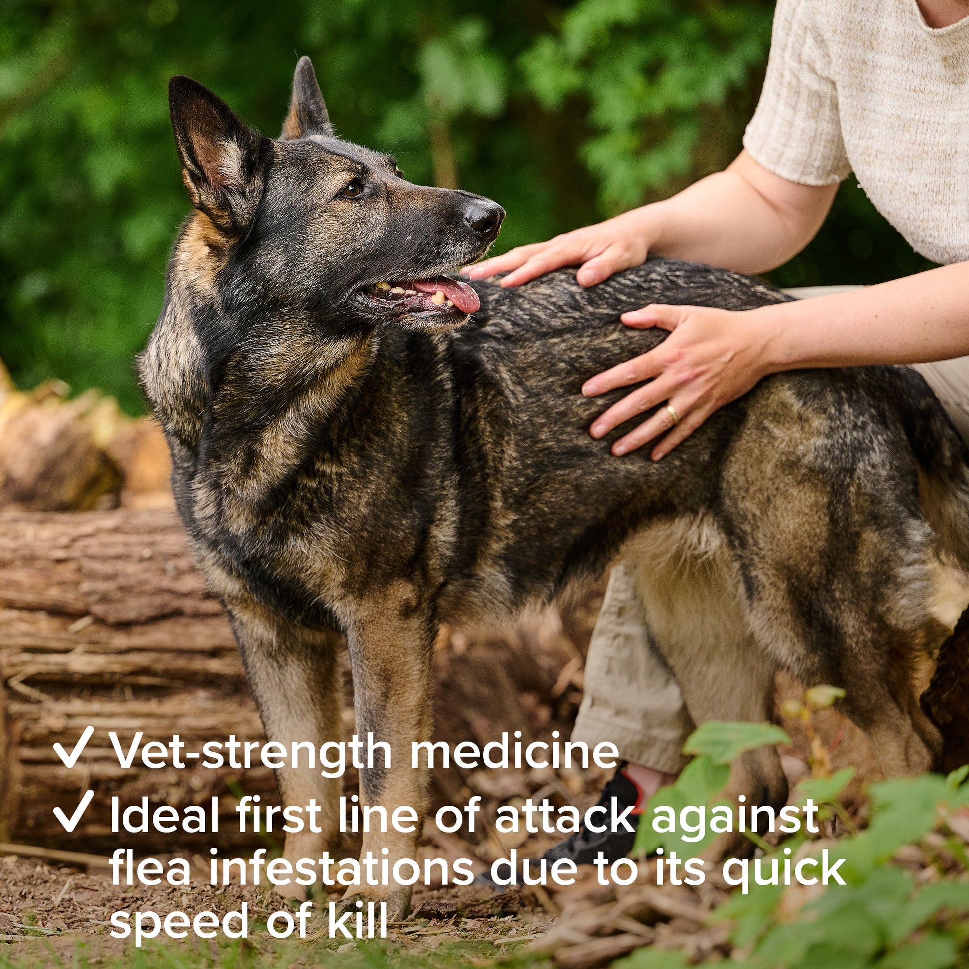 A veterinary medicine available without prescription, the tablets contain Nitenpyram. Effective within 15-30 minutes, 95-100% of fleas are killed within the first 6 hours after ingestion, and 100% are killed within 24 hours. It’s fast-acting efficacy makes it the ideal first line of attack against fleas, helping you get on top of a flea infestation quickly.
