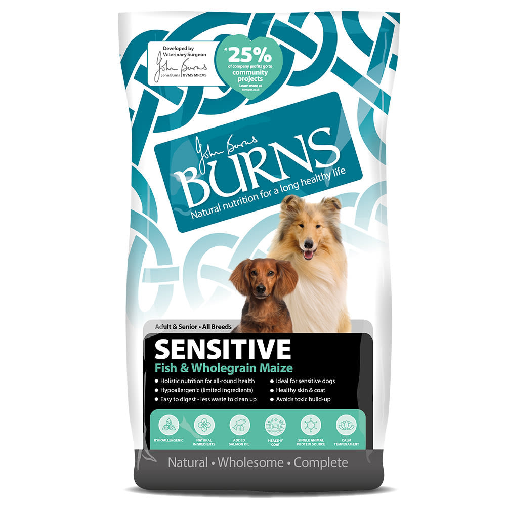 Made with a novel carbohydrate source and high-quality, highly digestible fish protein, Sensitive Fish is ideal for dogs with sensitive skin and digestion. Formulated without ingredients that commonly cause food intolerances such as wheat, soya, dairy, artificial colours and artificial preservatives, this Sensitive diet naturally helps to maintain healthy skin and coat and digestion. Wholegrain Maize is a novel carbohydrate, it is highly digestible and a great source of Omega 6 fatty acids.