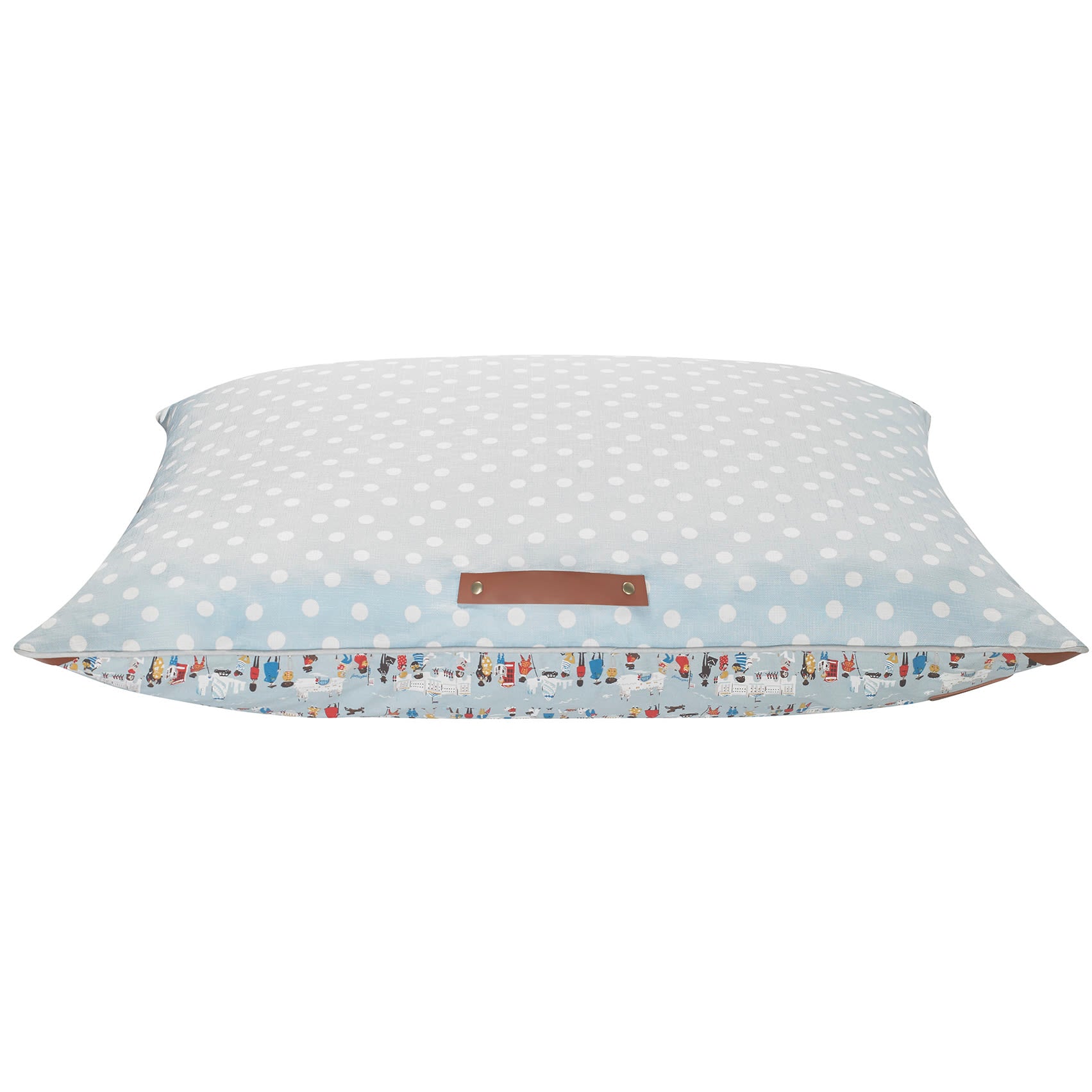 This stylish dog bed is the perfect accessory for four-legged friend. Made from high quality cotton and polyester fabric the super soft pillow bed is deeply filled with memory foam to give your dog the best support for their neck and back. The reversible cover is decorated with a pattern of London landmarks on one side and a beautiful polka dot print on the other. Complete with a leather Cath Kidston label as well as corner detail and a carry handle so it's easy to transport. The padded cushion provides maximum comfort when sleeping or relaxing.