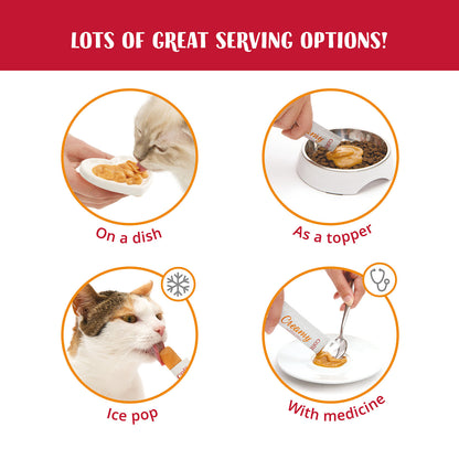 A nutritious and hydrating snack that adds variety to your cat's diet. Catit Creamy cat treats enable you to interact and bond during mealtime like never before! Catit Creamy does not contain corn, grain, wheat or soy. No artificial flavours, colours or preservatives are used either. These treats have a limited set of ingredients which can benefit sensitive cats with allergies. These high in protein, grain free treats have no derivatives and contain taurine which is an essential nutrient that helps your cat maintain normal digestion, heart muscle function, eyesight and a healthy immune system.