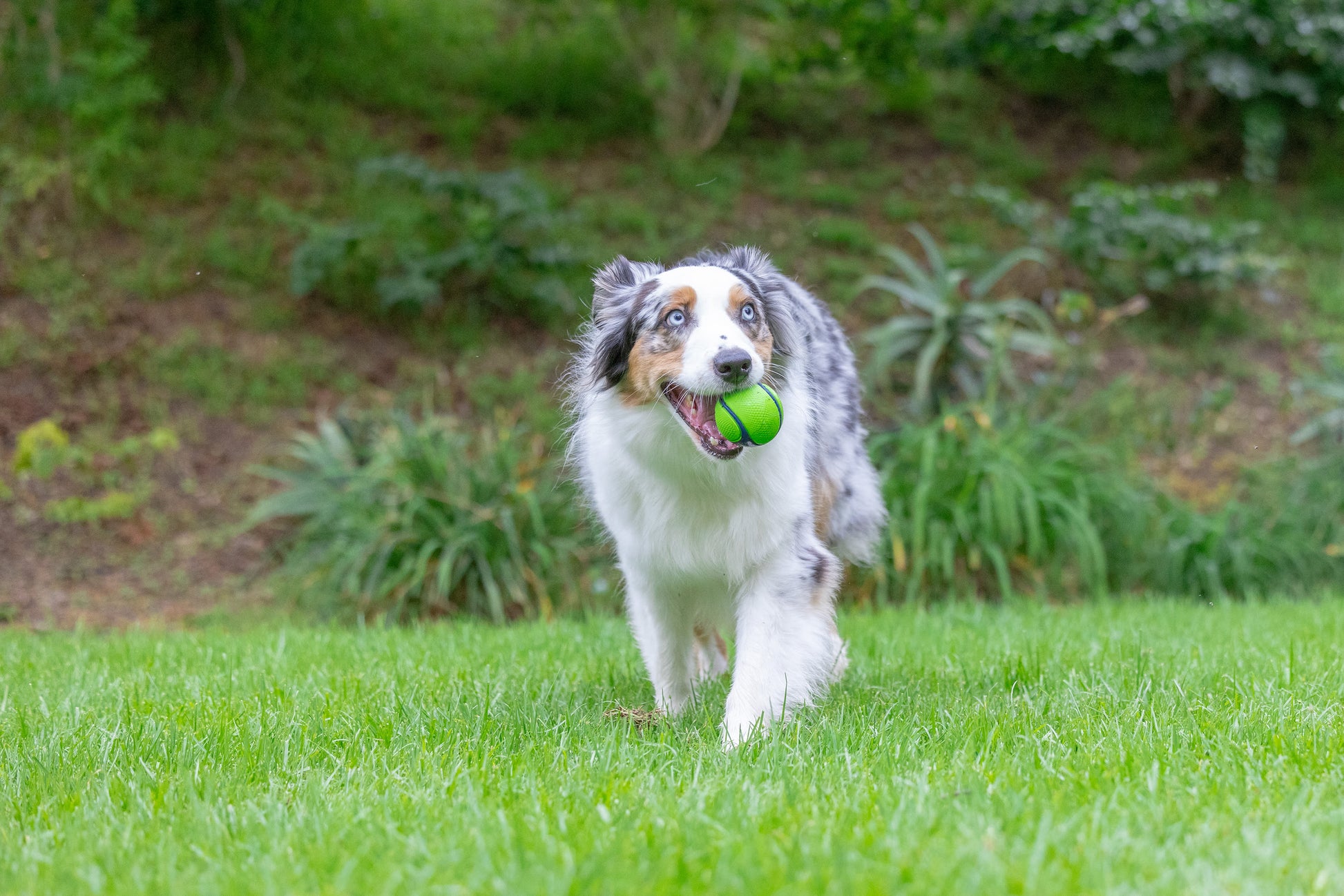 Rubber ball for dogs has a textured surface for added grip and a thick rubber exterior Infused with peanut butter.