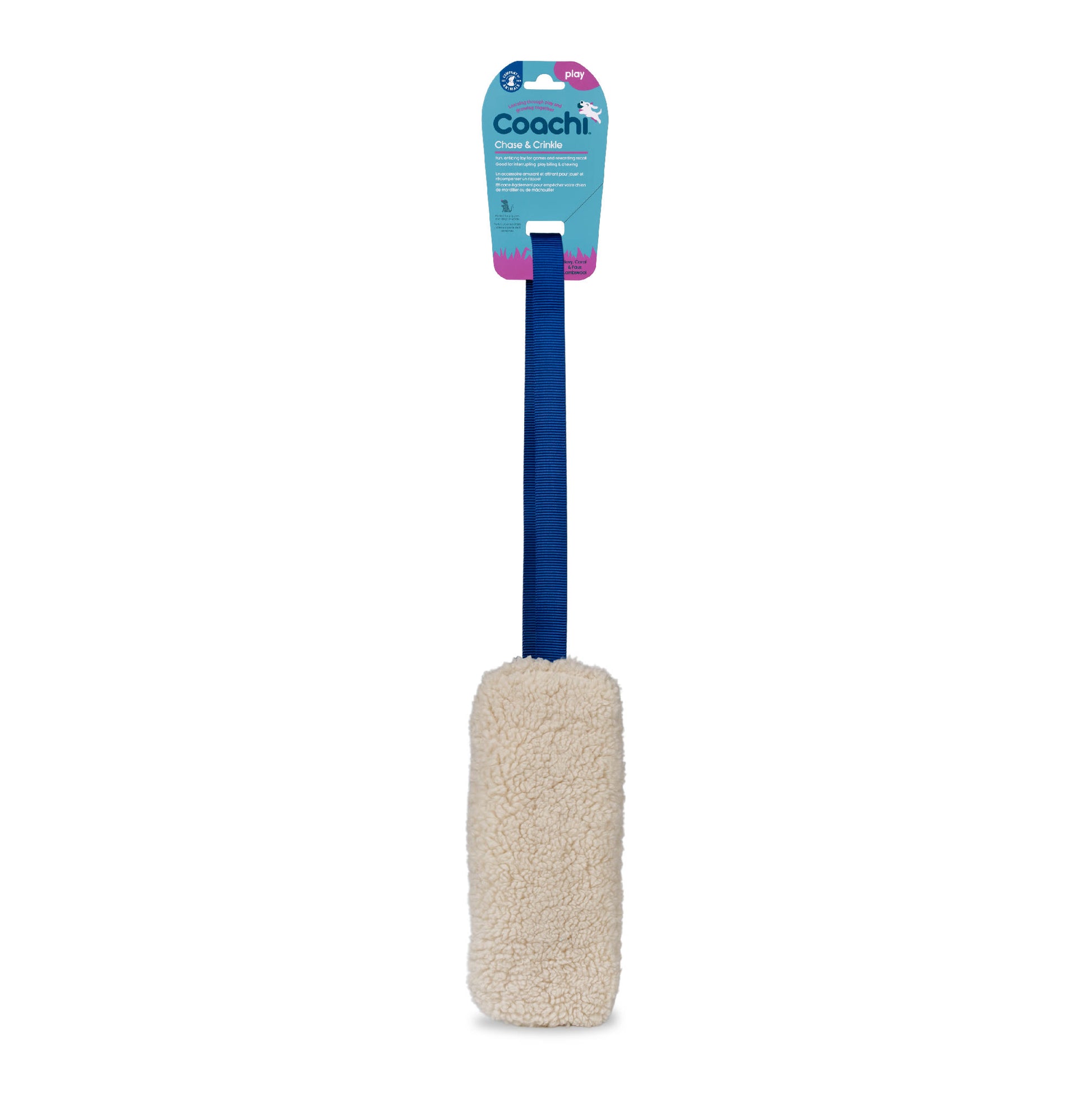 The Coachi Chase & Crinkle is great for all dogs who love to chase. This fun crinkle toy has a long handle which is great for chasing and encouraging recall by luring, it can also help interrupt play biting & chewing. Made from soft faux lambswool the Coachi Chase & Crinkle has a fun stimulating inner to motivate your dog to play. The soft neoprene handle makes it comfy for you too! These super stimulating toys are a great alternative and or addition to food rewards, especially for those high energy dogs who love to play. Harness the power of play and become your dog's best friend. The Coachi reward toys have been designed for you and your dog to have fun together whilst training. They are great for improving recall, discouraging chasing and perfect for reducing puppy mouthing and biting. Maintain the energy and enthusiasm by only using these toys as part of interactive play. Also good for dogs who are not treat motivated or need to watch their waistlines! The Coachi range was created by the experts at Company of Animals and it is designed to focus on promoting effective, humane and positive methods, making training simple and rewarding for both owners and their dogs.