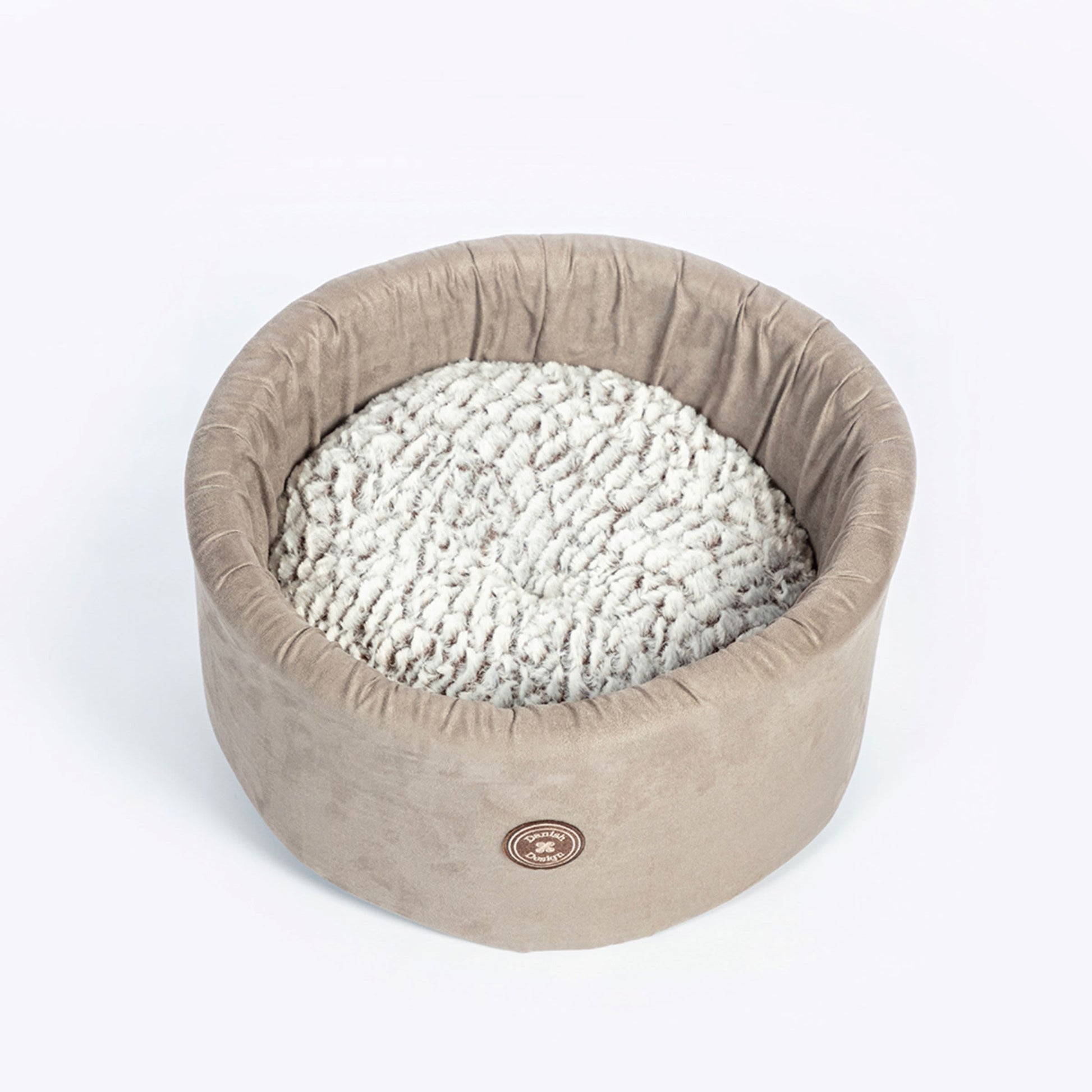 The perfect cosy space for cats who likes to hideaway. The soft fabrics used in the Artic collection make for extra cosiness. The smooth faux suede and silky faux fur give sumptuous warmth and comfort. The bed is made with Ecoflex filling, a material made from a majority of recycled fibres. This Spring Bond material is hypoallergenic, chemical free and 100% recyclable. It features an ‘S’ shape structure for enhanced recovery and long lasting comfort. The mattress is filled with a soft and fluffy polyester fibre filling which provides a lot of warmth and comfort. Made from a blend of standard and recycled PET flake, made from recycled plastic bottles which are cleansed, shredded and heated to form fibres.