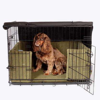 The Danish Design range of crate bedding transforms standard metal crates into a cosy sanctuary for your pet. Perfect for aiding with crate training, reducing anxiety and especially great for new puppies. Crate Cover: Made with beautiful upholstery fabric with black out lining, these covers limit surrounding sights and sounds to create a calm space for your dog to relax. With roll down doors at the side and front secured with useful toggles, these crate covers ensure easy access for your pet throughout the day for an impromptu snooze, but can be rolled down to help your dog understand when its time for rest. Crate Bumper and Mattress: Made with soft knitted sherpa fleece, these bumpers and mattresses add warmth and comfort to metal crates. Crafted using Springbond Ecoflex filling, a material made from a majority of recycled fibres. This Spring Bond material is hypoallergenic, chemical free and 100% recyclable. It features an ‘S’ shape structure for enhanced recovery and long lasting comfort. Made to accompany the majority of standard crates and all available in four homely colourways; Grey, Olive, Oatmeal and Mauve.