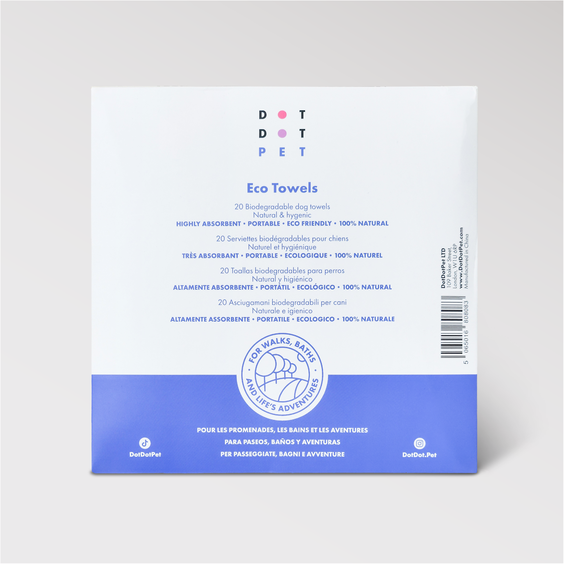 Each box contains 20 towels, each measuring 40cm x 80cm, so you have plenty of coverage to keep your dog dry. The lightweight packaging makes them easy to store, while the eco-friendly nature ensures you're helping the planet too!