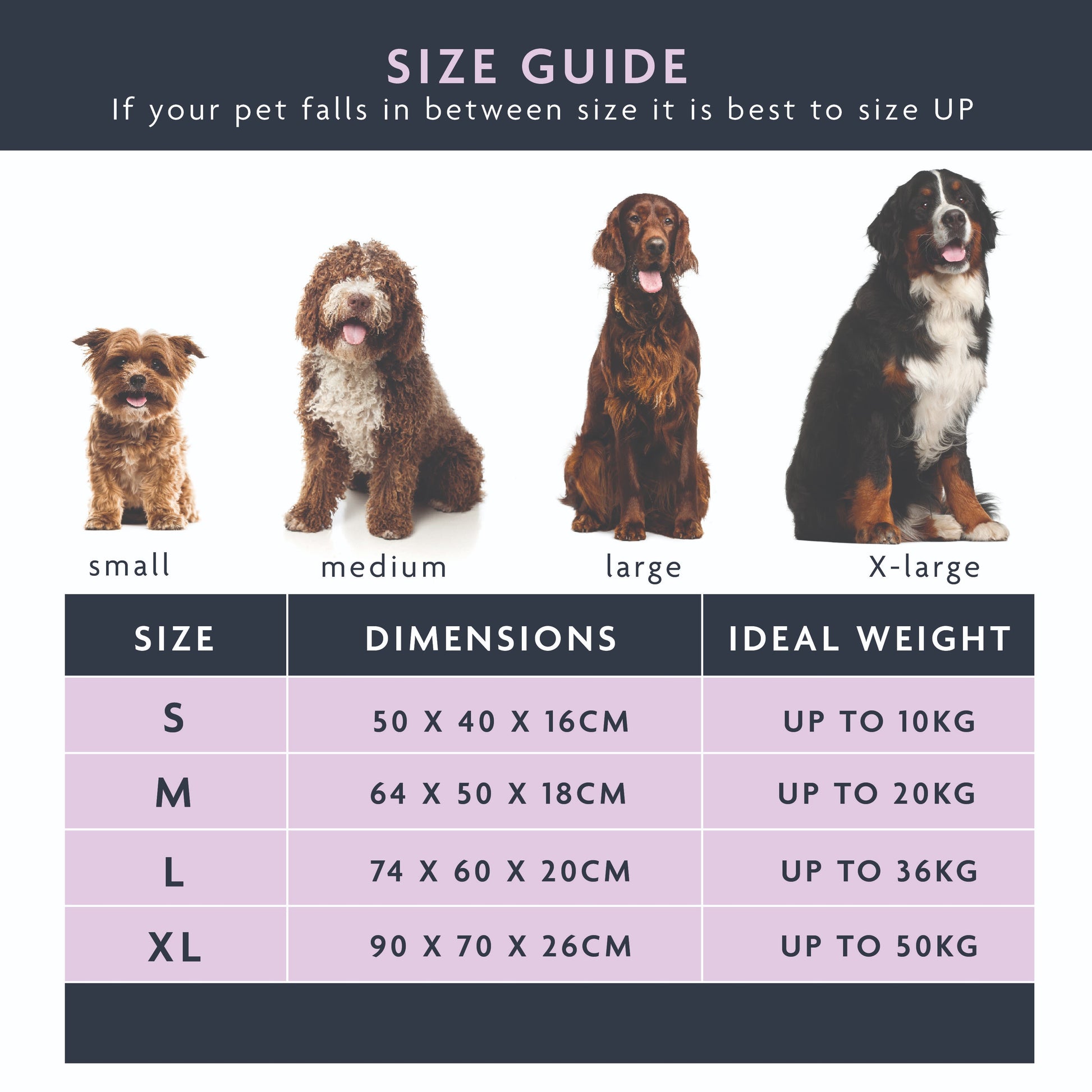 Part of the New Dream Paws Collection, this chic and cosy bed is made with luxurious and calming teddy fleece material, inviting your dog to snuggle down. The supportive edges serve as a perfect headrest, creating a cosy, den-like feel that helps your dog feel secure and promotes a restful night's sleep.