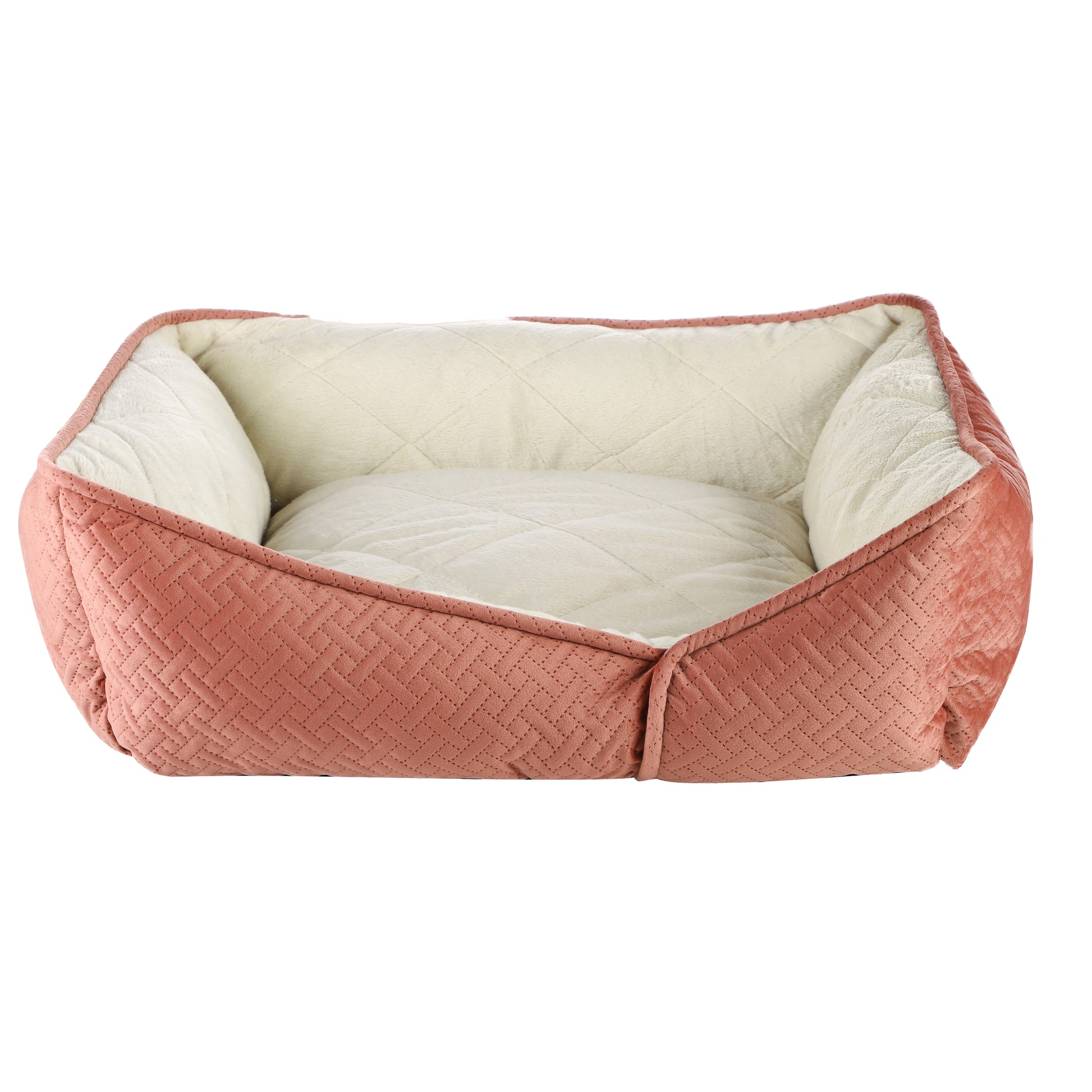 Stylish and super comfortable, our cosy pet bed is perfect for your dog to relax and get cosy anywhere around your home. This luxury dog bed provides the perfect safe haven for your pet to relax. Beautifully upholstered in a super soft coral polyblend material, combined with stunningly crafted quilted inner, this dog bed creates a cosy and warm environment for your pet to snooze. The bolster dog bed features extra padded walls which provide added support for your furry friend as they relax, and the anti-slip base will keep it firmly in place.