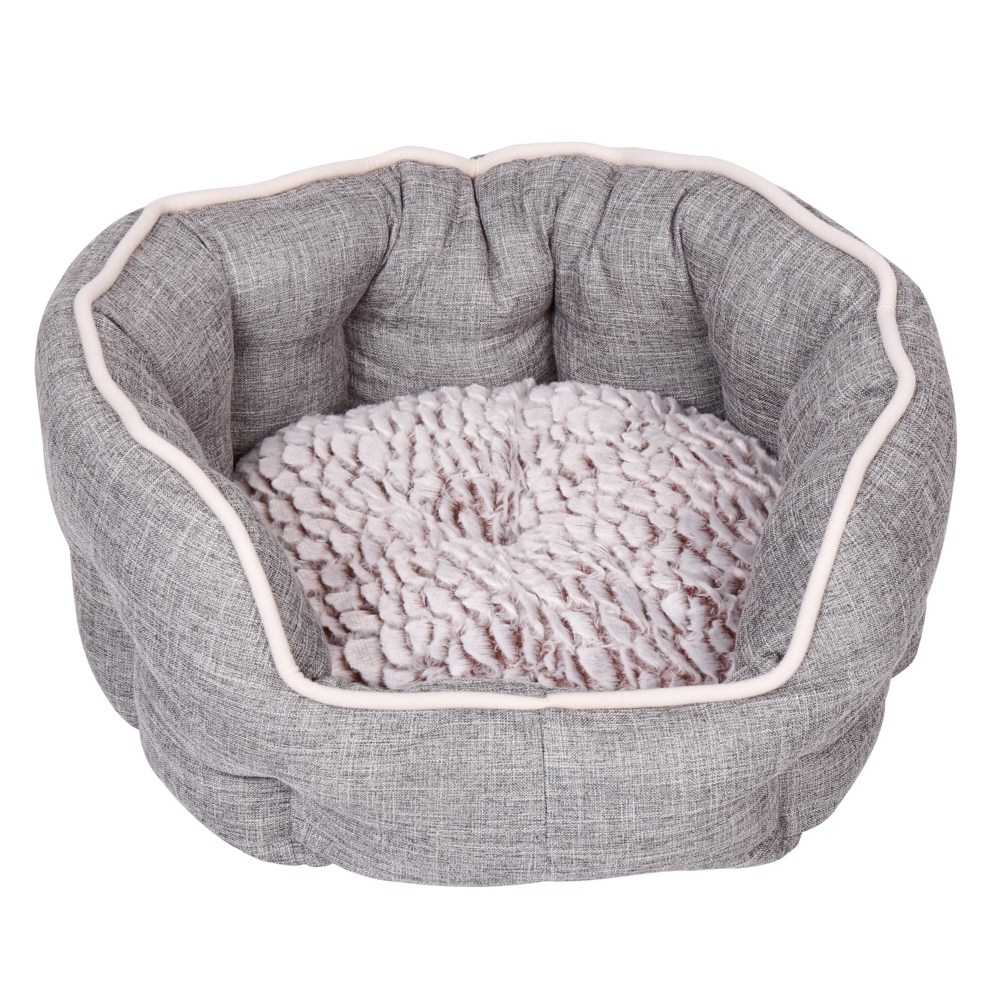 Part of our new Dream Dog collection our Cosy Bed, with it's deeply filled walls, is a sumptuous choice for any spoiled pet. The reversible inner cushion allows you to switch between the stylish faux linen outer and indulgently soft plush. The neutral colouration and complimentary faux fur ensures this piece can be used within bedroom, kitchen or lounge. Our bed is fully machine washable at 30c and has a non-slip base.