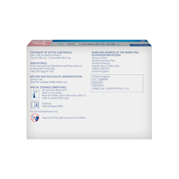 For optimal protection against fleas and ticks for dogs and cats with a unique drop-lock pipette, as prescribed by your veterinary surgeon.