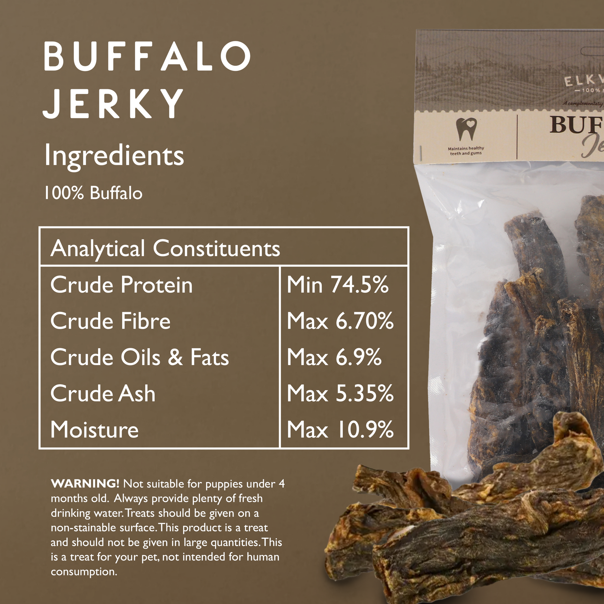 Treat your dog to the Elkwood 100% Natural Buffalo Jerky Chew, crafted from high-quality buffalo to provide a high-protein, low-fat snack. Packed with Omega-3 fatty acids, these treats support a healthy diet while promoting oral health and overall well-being.