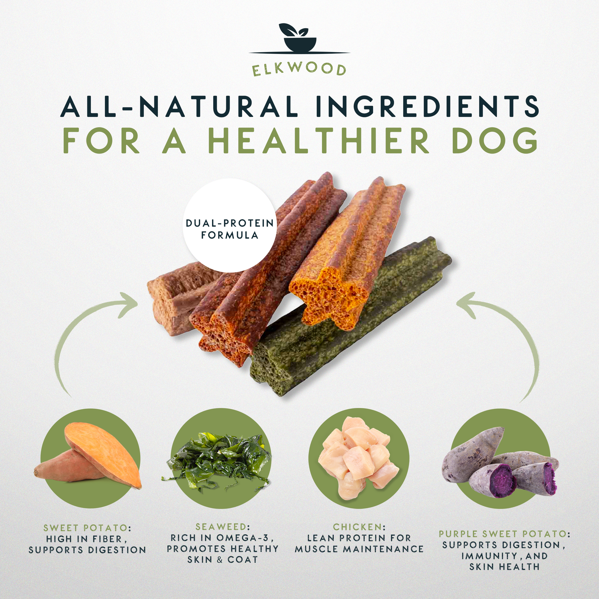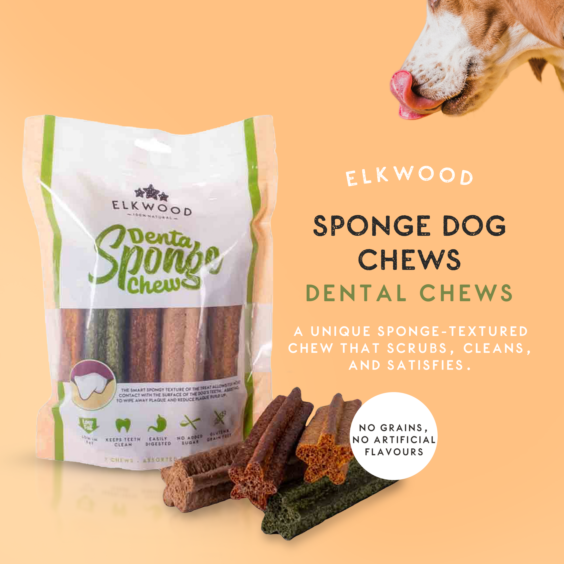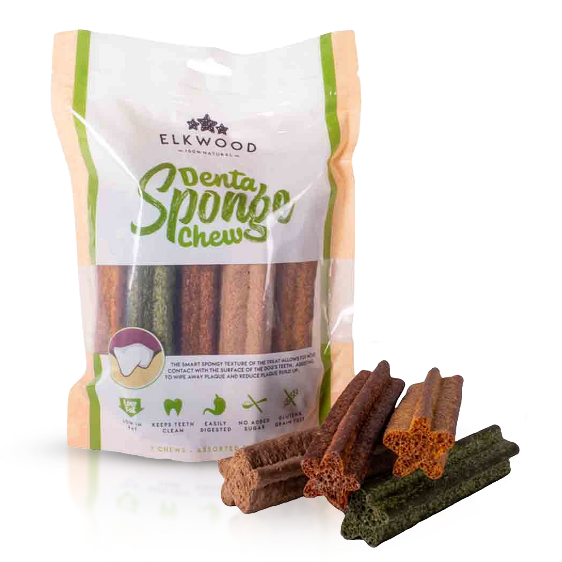 Treat your dog to a smart, natural solution for oral health with Elkwood Sponge Dental Sticks. These delicious, dental sponge chews feature a unique spongy texture that reaches the gumline, helping to wipe away plaque and prevent buildup, promoting cleaner teeth and healthier gums.