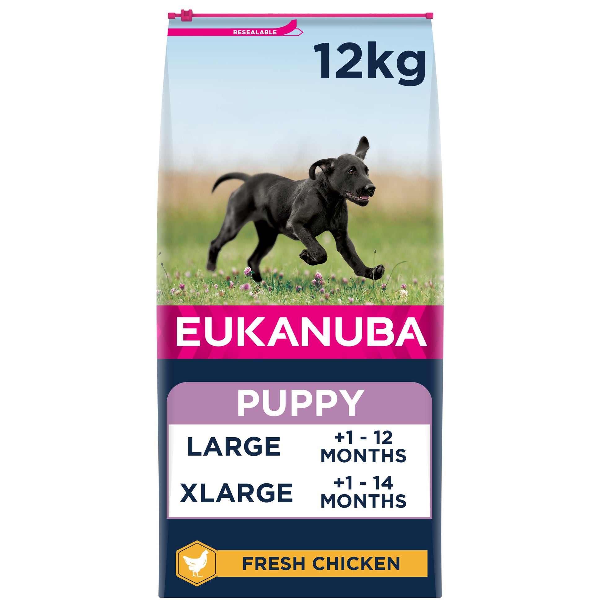 Improved Eukanuba formula remains firmly committed to feeding dogs as carnivores and now Eukanuba is rich in fresh chicken for better digestion and an even better taste. This puppy food for large breed dogs provides a tailored life-stage approach, for nutrition that builds and supports for Optimal Body Condition. Eukanuba builds from one life-stage to the next so you can share a long healthy life with your dog. We’ve developed a unique hexagon kibble shape and thanks to its round angles and unique shape it has improved the palatability of Eukanuba even further. It also continues to help keep your dog’s teeth clean thanks to our DentaDefense. And of course our kibbles are available in a range of different sizes to meet the different requirements of toy, small, medium and large breed dogs. Finally it is a planet friendly pet food with at least 25% of our factory’s energy being generated from our own wind turbine. And it is made in Europe.