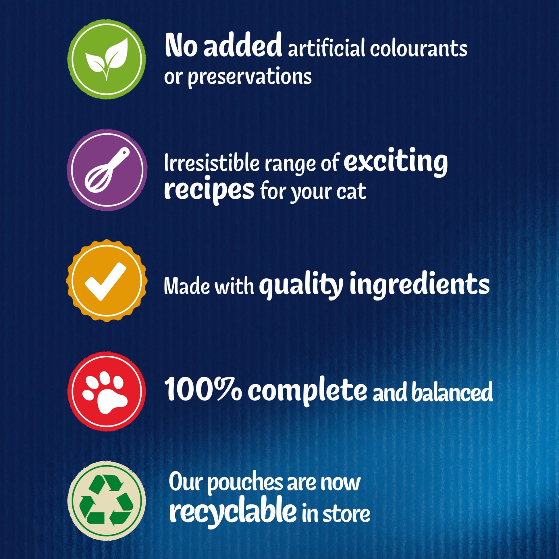 Each recipe, made with quality ingredients, has tender pieces combining two delicious flavours in jelly so your cat can enjoy two of his favourite flavours in one tasty meal.