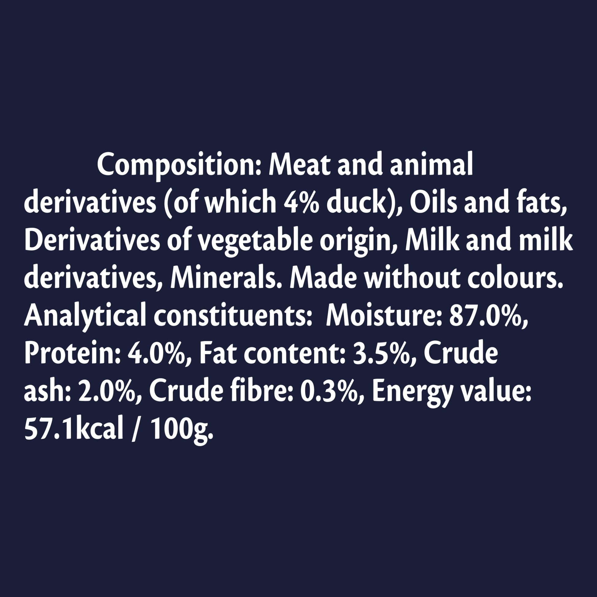 Composition: Meat and Animal Derivatives (of which 4% Duck), Oils and Fats, Derivatives of Vegetable Origin, Milk and Milk Derivatives, Minerals