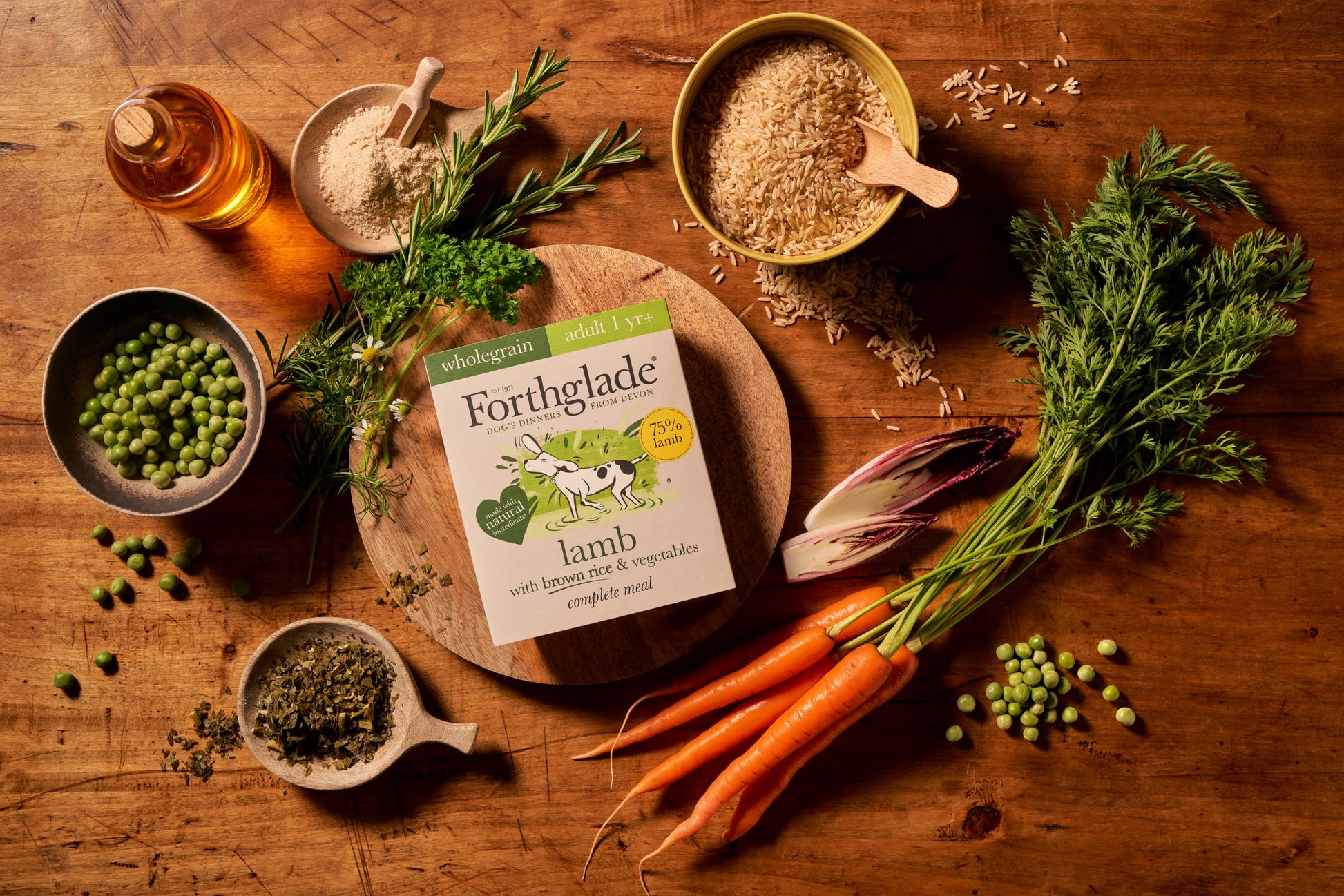 Our complete Lamb with Brown rice is suitable for dogs 1 years +. A complete and balanced meal containing everything your dog needs to stay happy and healthy. Whole grain is easily digestible and great for healthy digestion. We're a bunch of Devonian dog lovers on a mission to make your relationship with your biggest fan as nourishing as it can be. So we use natural ingredients with no junk or fillers. This is best-friend food and tail-waggingly good.