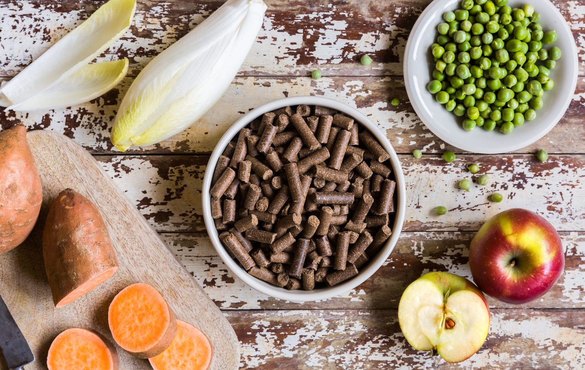 Composition: Turkey 32.5% (17.5% freshly prepared turkey, 15% dried ground turkey)*, dried sweet potato (28%)*, dried peas*, gelatin*, chicken fat*, dried beet pulp*, dried fruit (2.3%: apples, pears, blueberries, cranberries)*, brewer’s yeast*, salmon oil (1%)*, dried botanicals (0.6%: fennel, nettle, dandelion)*, mannan-oligosaccharide*, egg powder*, chicory extract*, dried seaweed*, camomile*, flaxseed oil*, glucosamine (300mg/kg), chondroitin sulphate (300mg/kg), yucca extract (0.02%)*.