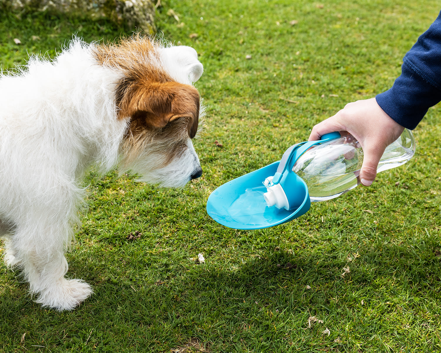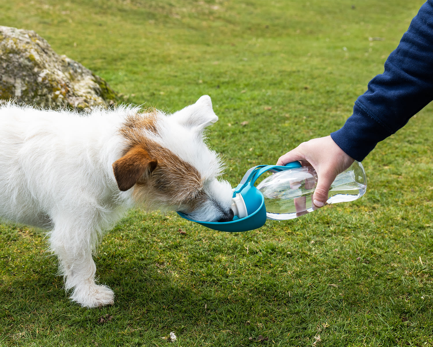 The Henry Wag Water Bottle with Leaf Bowl is a convenient solution to providing hydration for your dog no matter the location. Our Water Bottle with Leaf Bowl is the perfect travel accessory for every dog walk. Simply flip the leaf from the side of the bottle to under the bottle neck and a drinking bowl for your dog is created. The water bottle has a capacity of 500ml and is easy to carry with both a loop and a lanyard for easy attachment. Available in two colours - Grey or Blue.