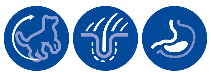 | Weight of the dog (kg) | 2.5 | 5 | 10 | 20 | 30 | 40 | 50+ |