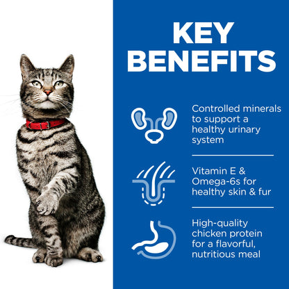 Hill's Science Plan Urinary Health dry cat food is specially formulated to support the whole urinary system. Suitable for sterilised cats. Controlled minerals to support a healthy urinary system. Vitamin E & Omega-6s for healthy skin & fur. High quality chicken protein for a flavourful nutritious meal.