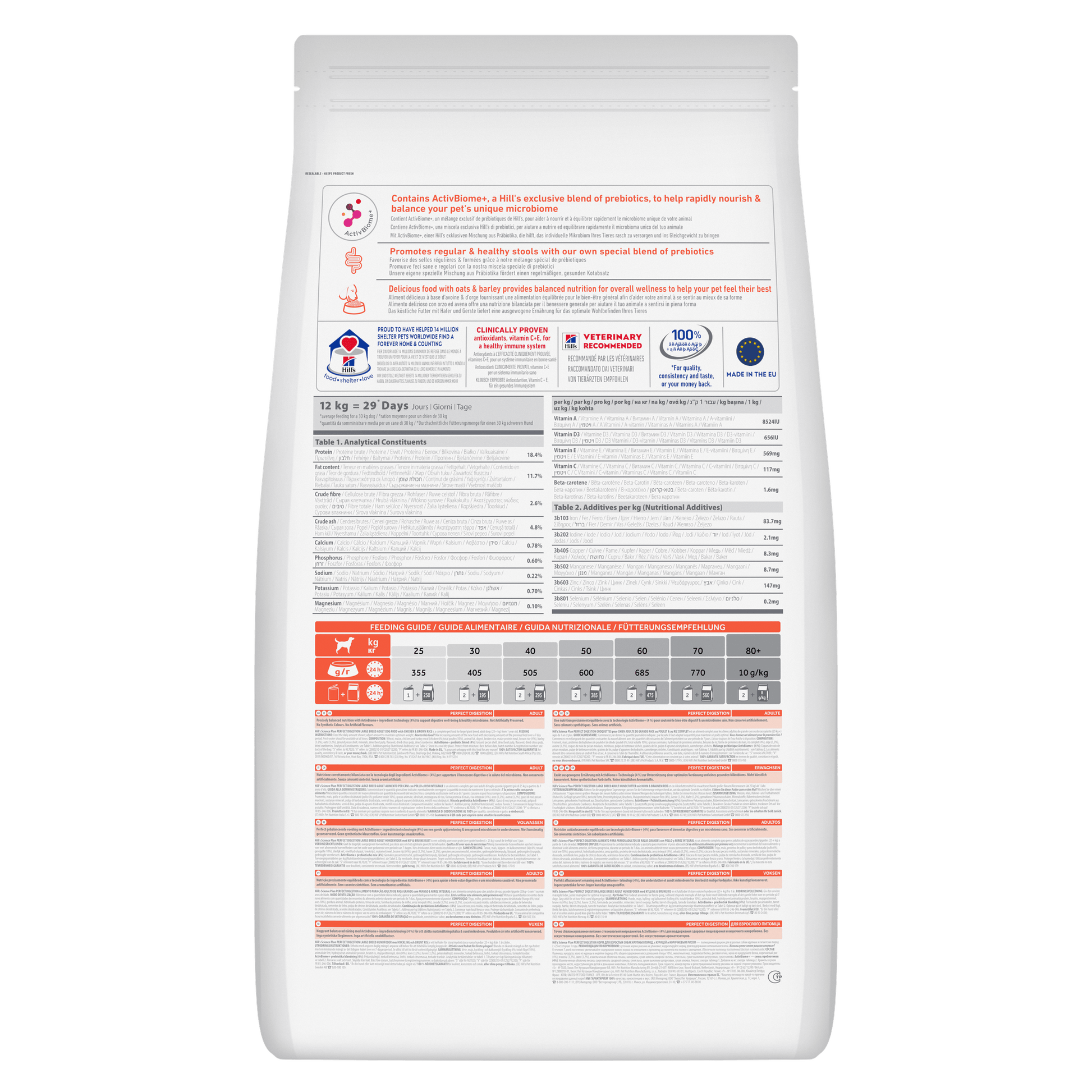 Hill's Science Plan Perfect Digestion Adult 1+ Large breed dog food contains ActivBiome+, a Hill's exclusive brand of prebiotics, to help rapidly nourish & balance your pet's unique microbiome. It promotes regular & healthy stools with our own special blend of prebiotics. It's a delicious food with oats & barley to provide balanced nutrition for overall wellness to help your pet feel their best.
