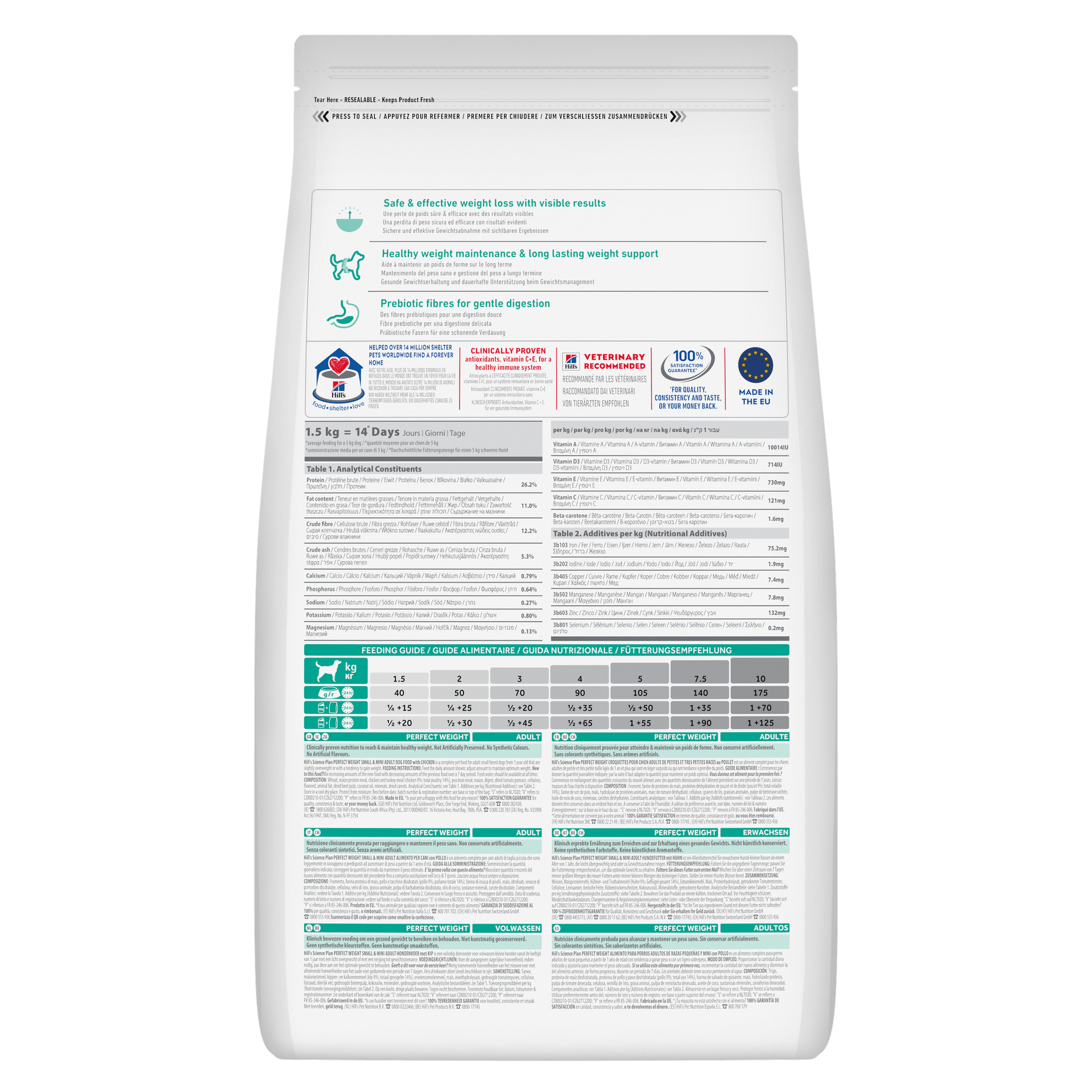 Hill's Science Plan Perfect Weight Small & Mini Breed Adult Dog Food with Chicken provides delicious, clinically proven nutrition to help your adult dog reach & maintain a healthy weight. This premium dry dog food for small & mini breed dogs contains a high protein, high fibre formula enriched with L-carnitine & coconut oil to support pets' metabolism, and prebiotic fibres for gentle digestion.