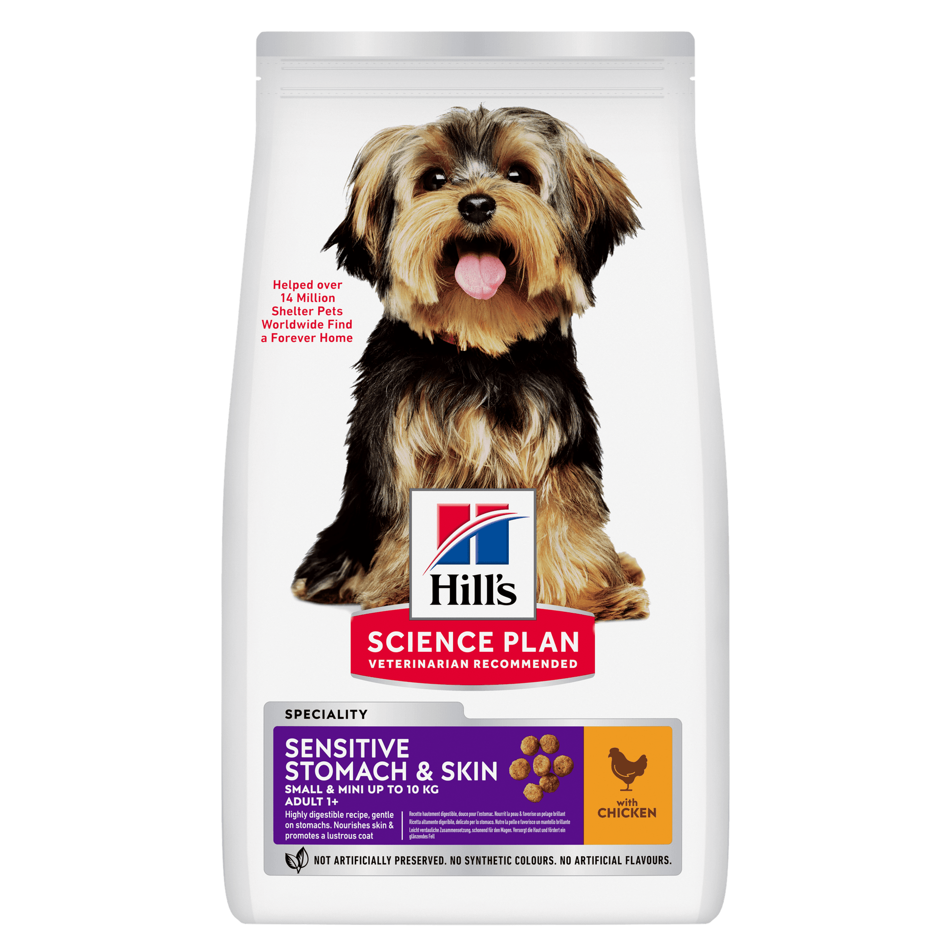 Hill's Science Plan Sensitive Stomach & Skin Small & Mini dog food is tailored nutrition for Small & Mini dogs while being gentle on stomachs. Nourishes skin & promotes a lustrous coat.