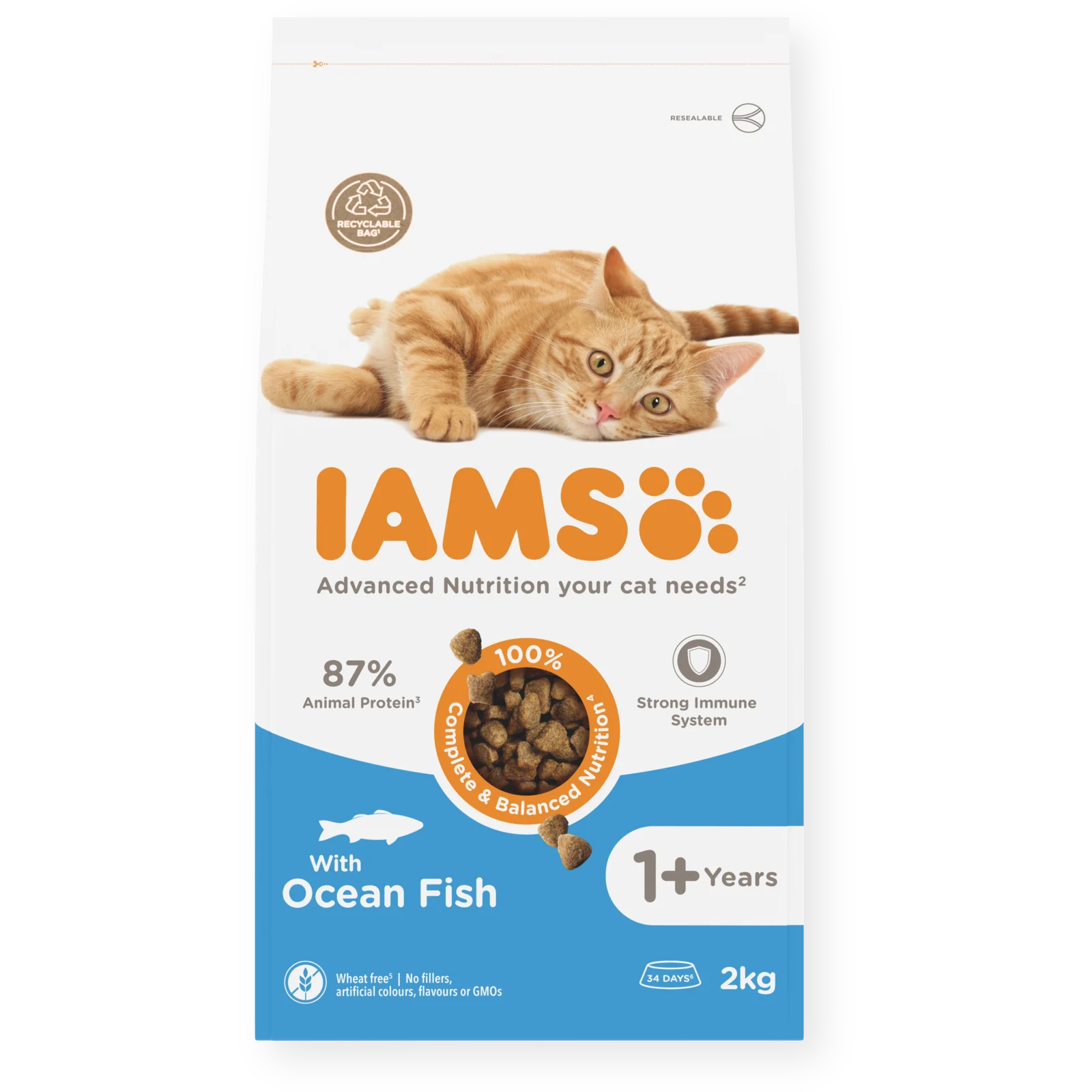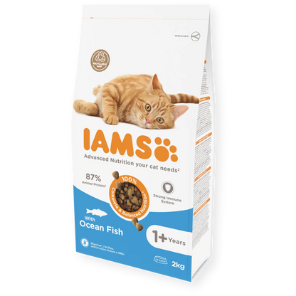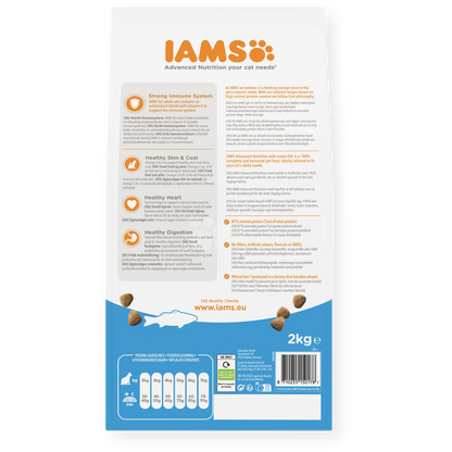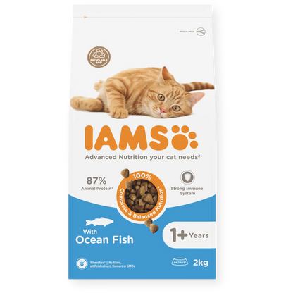 IAMS for Vitality for adult cats with Fresh Chicken is a 100% complete and balanced cat food for your cat. Our improved recipe contains 87% animal protein (out of total protein). With no fillers, artificial colours, flavours or GMOs and a wheat free recipe (produced in a factory that handles wheat). Only you know your pet's individual character, but IAMS knows the nutrition they need for the 7 signs of healthy vitality.