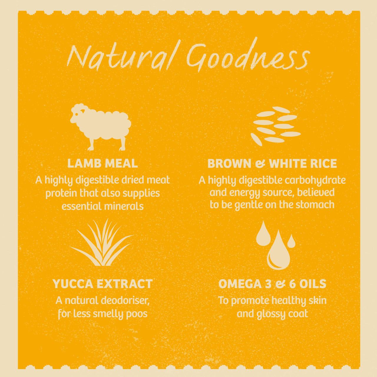 This recipe has been carefully formulated to meet the developmental requirements of the older puppy, at a time when balancing muscular and skeletal development is so important. To create it, we've taken a handful of nature's nourishing ingredients and combined them with flavourful lamb for highly digestible, quality protein. Then, using all our knowledge and experience, we've added all the vitamins and minerals your pet needs to stay happy, healthy and full of life.