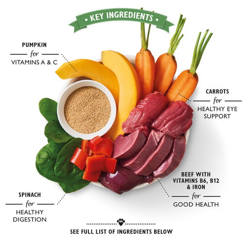 This recipe is carefully crafted using natural ingredients with vitamins and minerals. Full of real, top notch freshly prepared meat and vegetables, it's completely free from nasty meat meals and fillers.