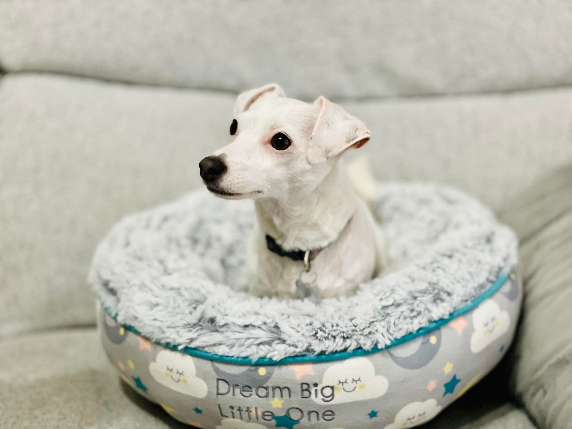 The Little Petface Donut Pet Bed is a warm and cosy sleeping space for your kitten, cat or small dog. 'Dream Big Little One' is embroidered onto the side, making it perfect for your pet to relax and snuggle in. With a soft fleece outer and a faux fur cushion, this donut bed is super soft and has an anti-slip base to prevent it from sliding around. The bed measures 45cm x 45cm x 12cm approximately. Machine washable at 30 degrees.