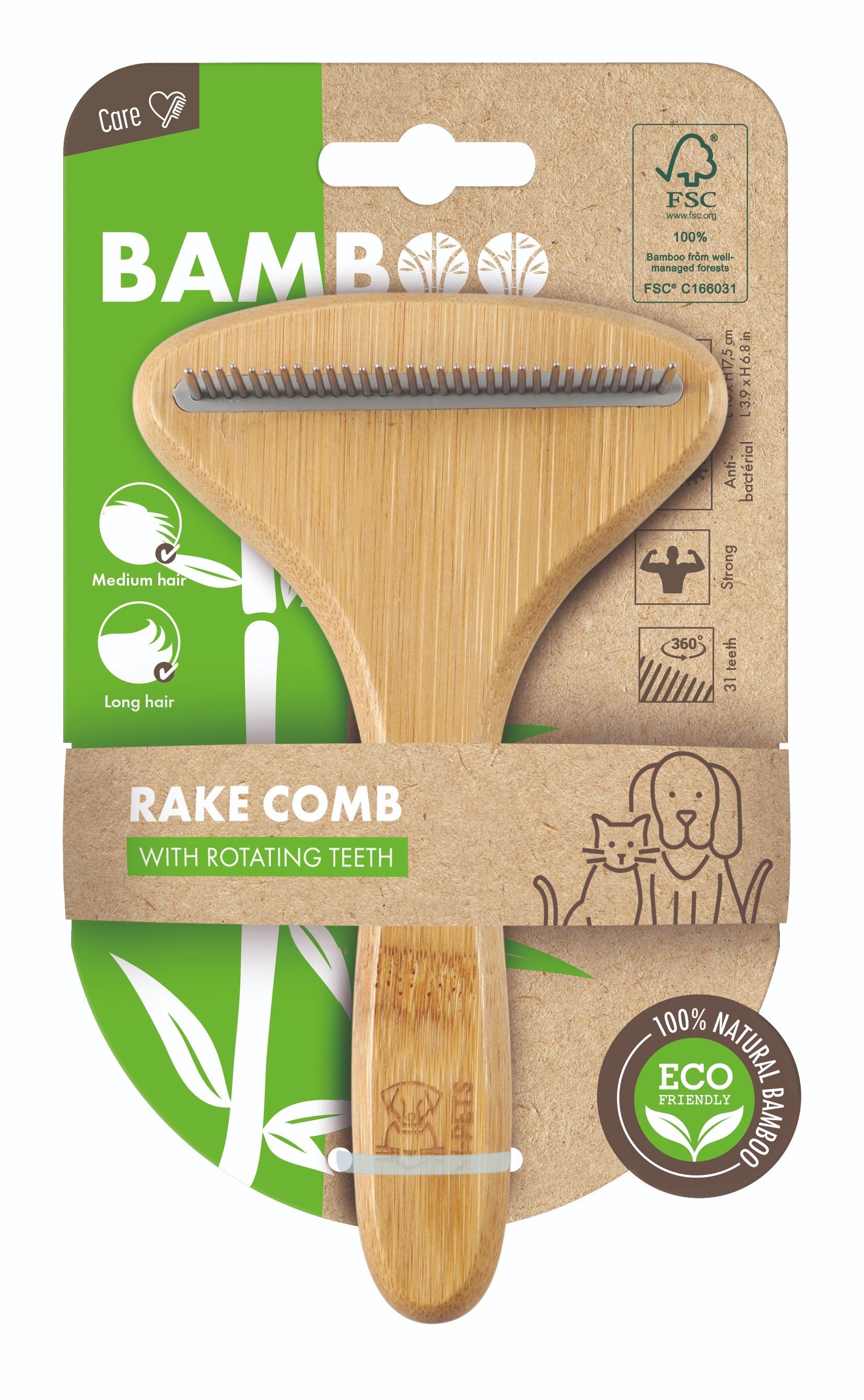 Perfect for all coat types, this rake comb combines effective grooming performance with sustainable, pet-friendly design.