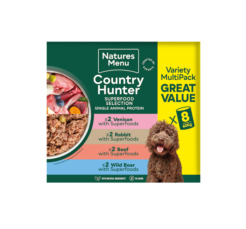 For over 40 years the experts at Natures Menu have been crafting nutritious dog food, to provide your dog with all the goodness of natural ingredients. We make our ranges complete and balanced and with high-quality ingredients to ensure you can provide your dog with nutritious and tasty food. Our Country Hunter recipes are packed with natural goodness from a special selection of fruit, veggies and superfoods.