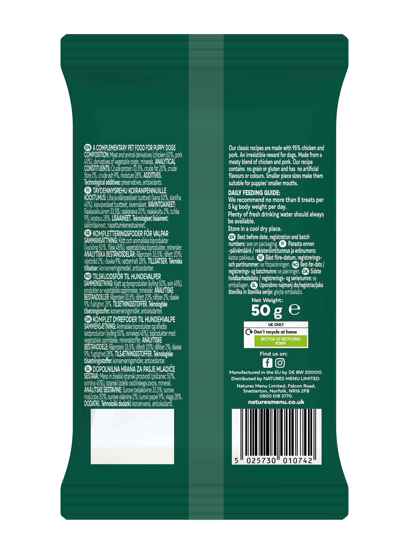 Natures Menu Meaty Treat for Puppy Dog with Chicken & Pork - 50g