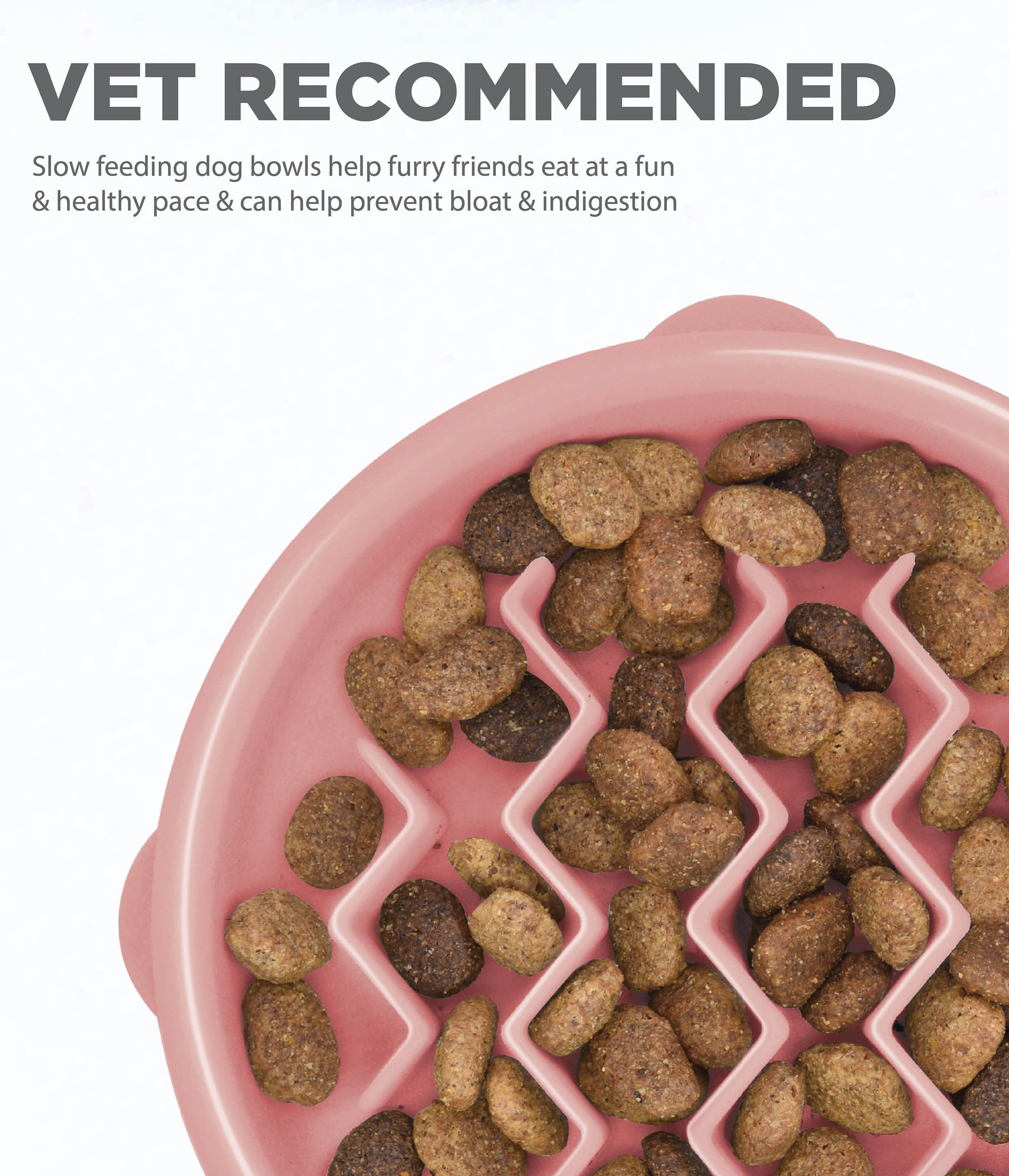 Aids in proper digestion: Common issues that arise in fast-eating dogs include bloating, regurgitation, and canine obesity. Our Fun Feeder Slo Bowls both challenge and engage your dog during mealtime while helping reduce overeating behavior.