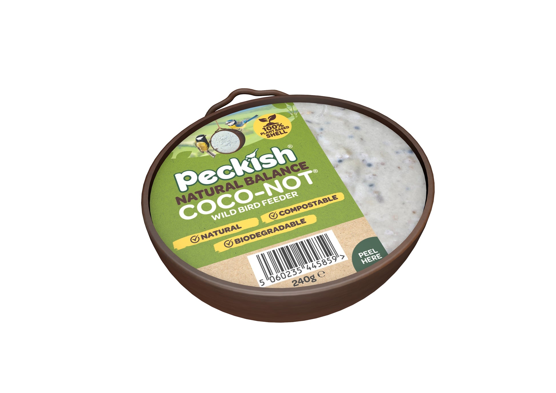 The Peckish Coco-Not Feeders shell is made using UK crop waste making them 100% natural and sustainable. Once the birds have finished feasting, simply pop the empty shell in your food waste bin or home compost and it will break down at the same rate as a banana peel!