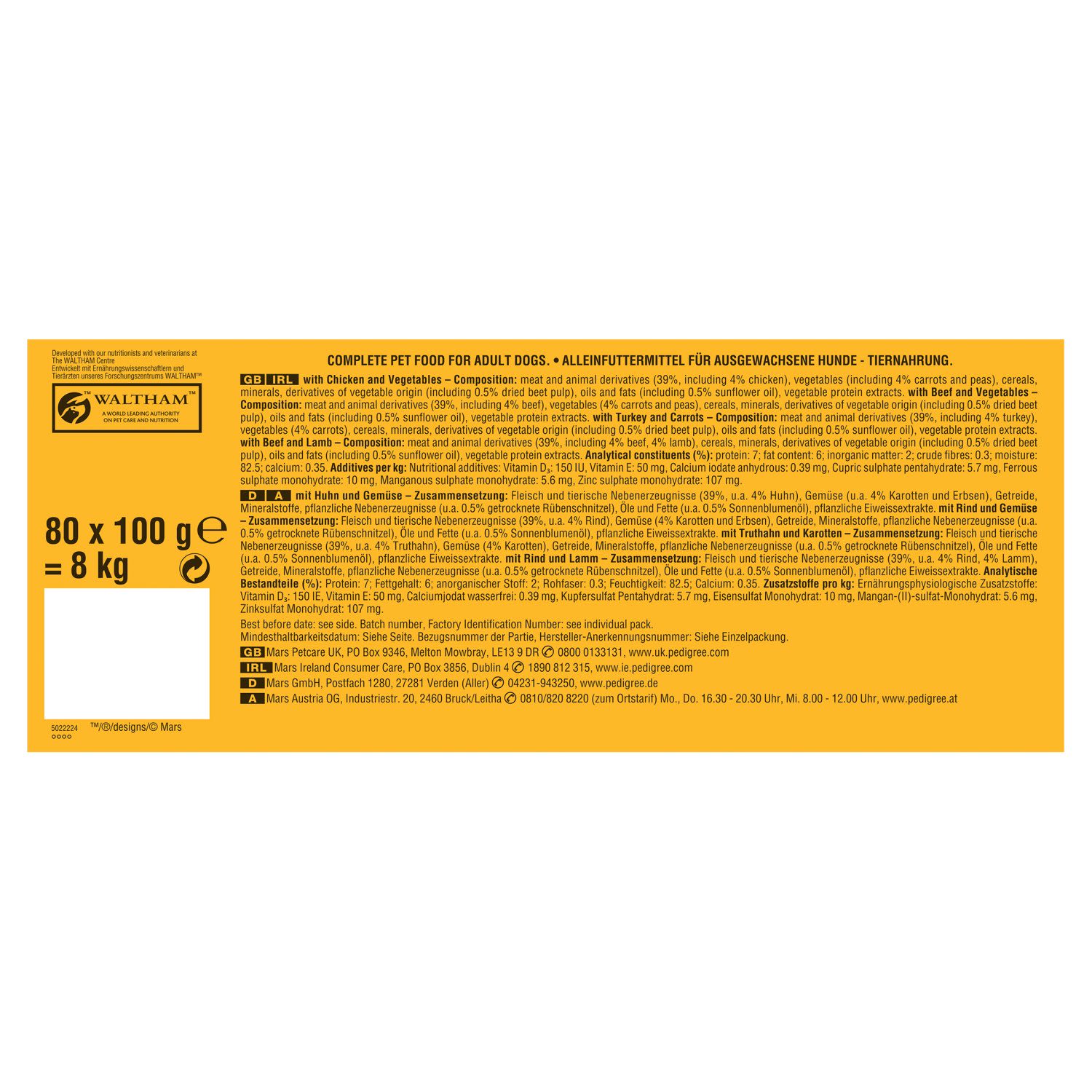 - Large multipack of 80 x 100g pedigree wet dog food for adult domestic dogs