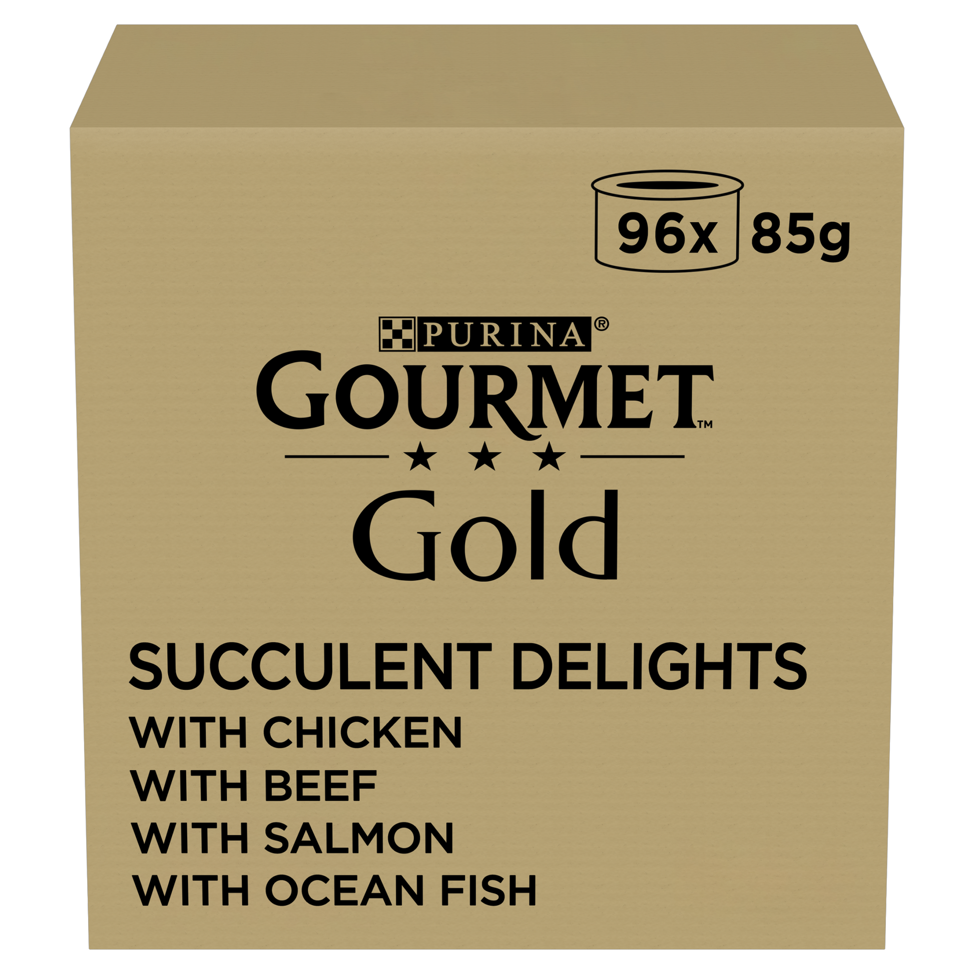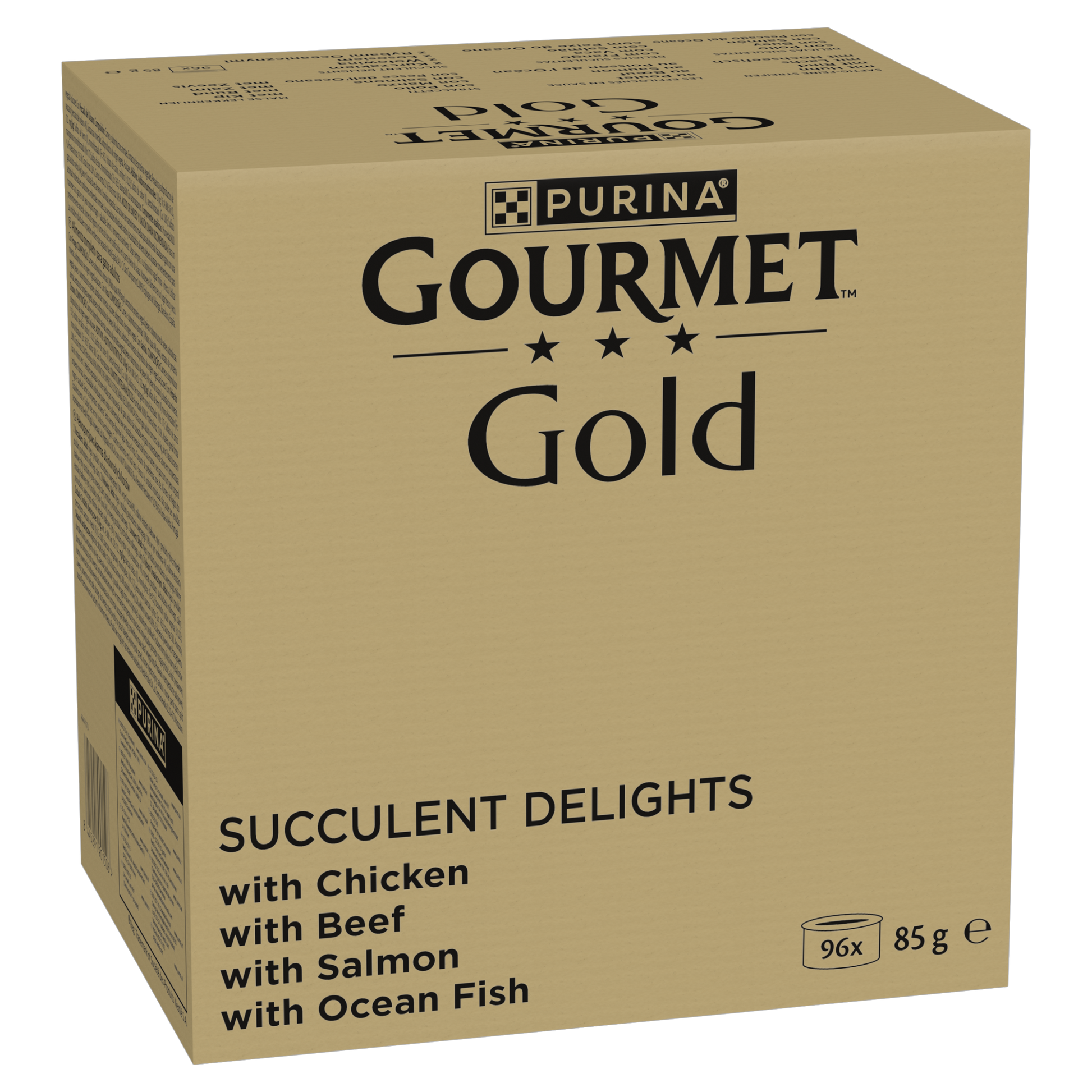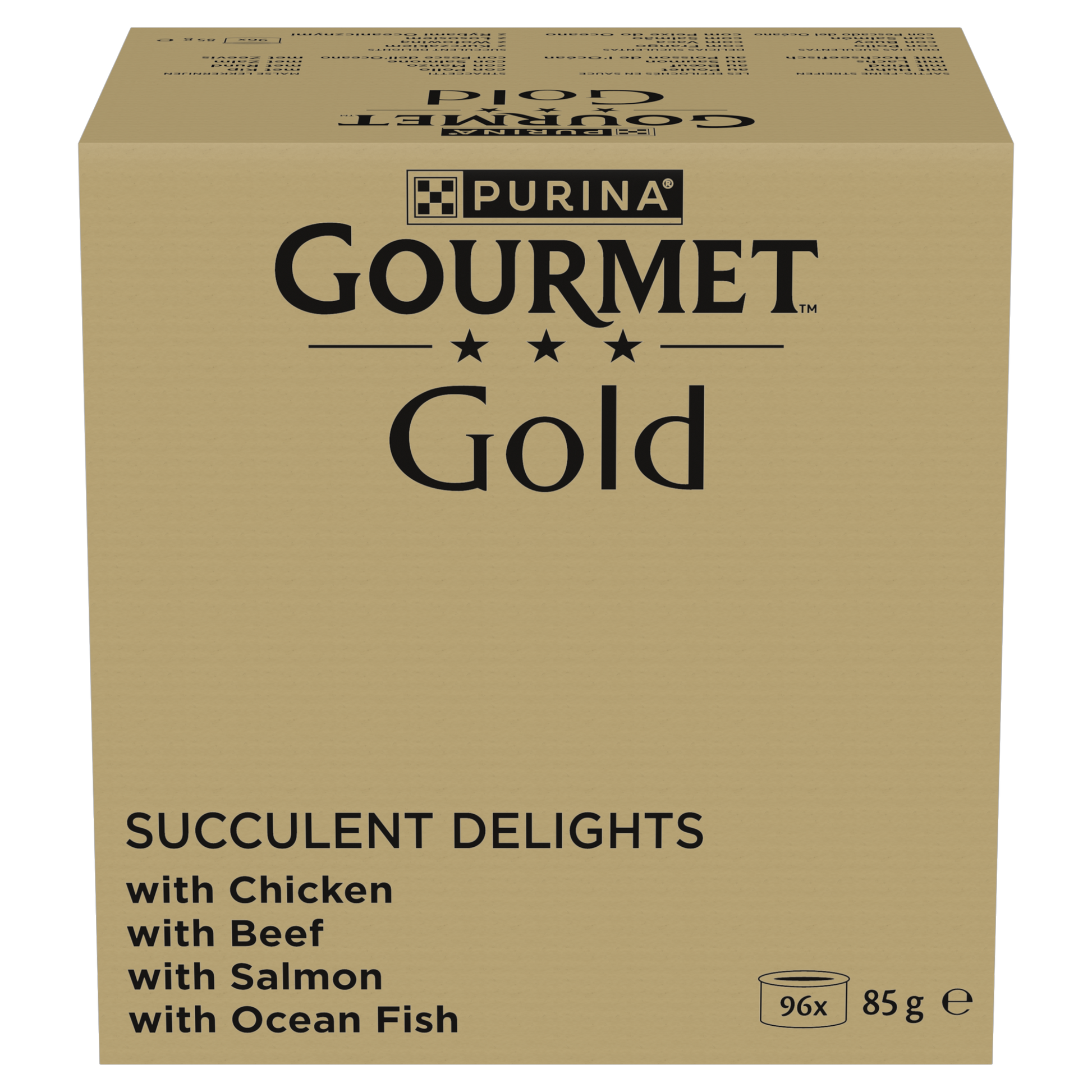 GOURMET Gold has created Succulent Delights - a delicious product made with a juicy slow cooked recipe with succulent pieces to delight your cat. Complete pet food for adult cats.