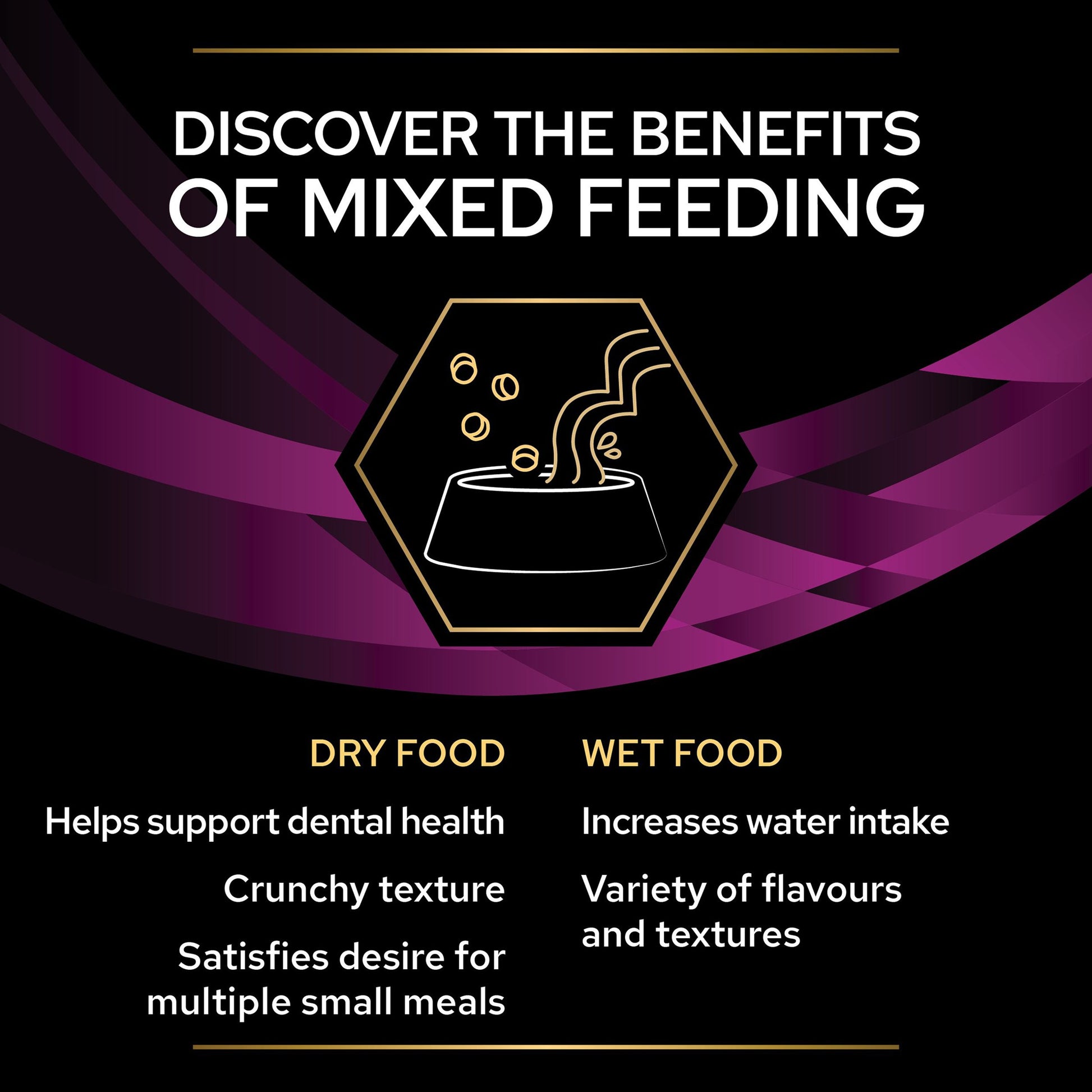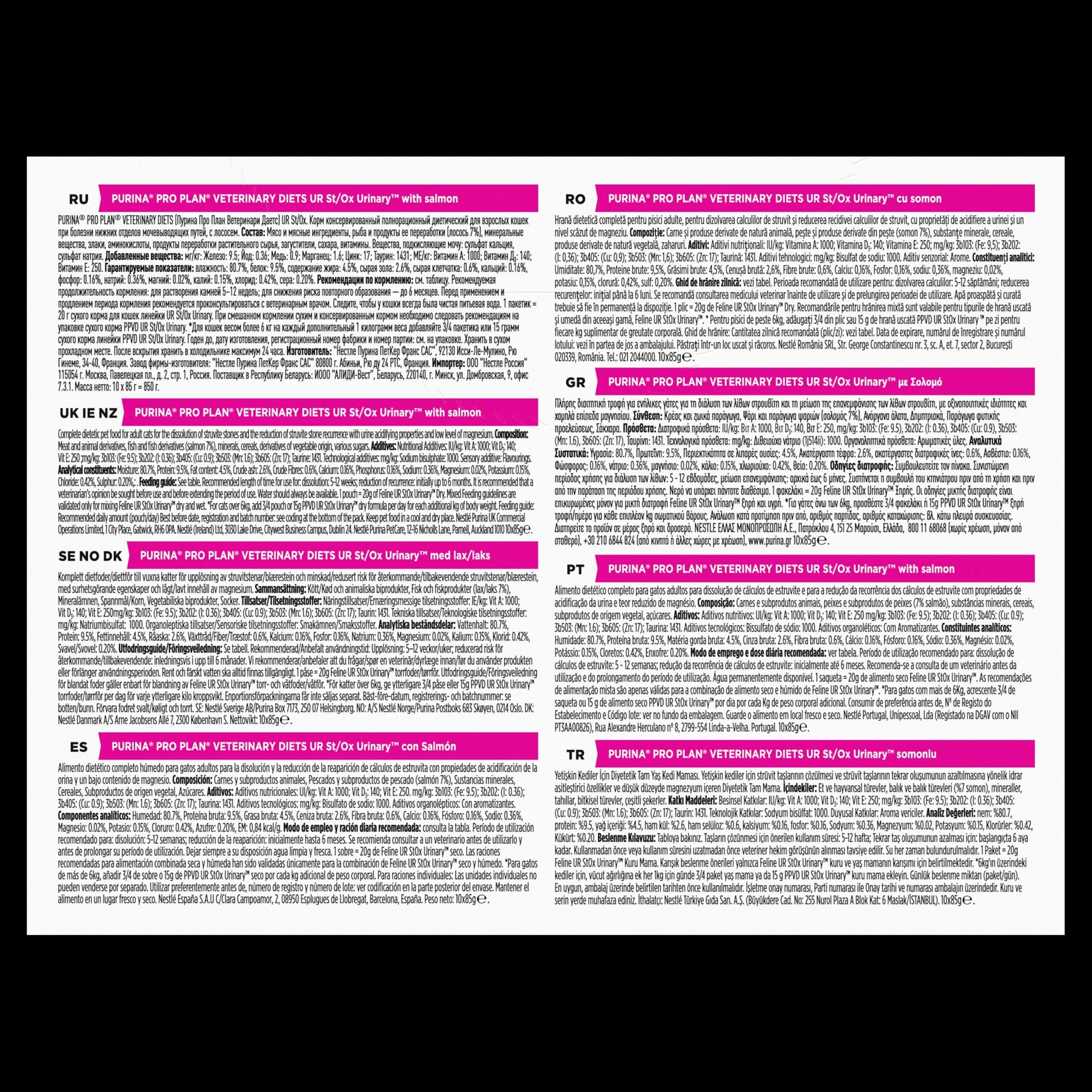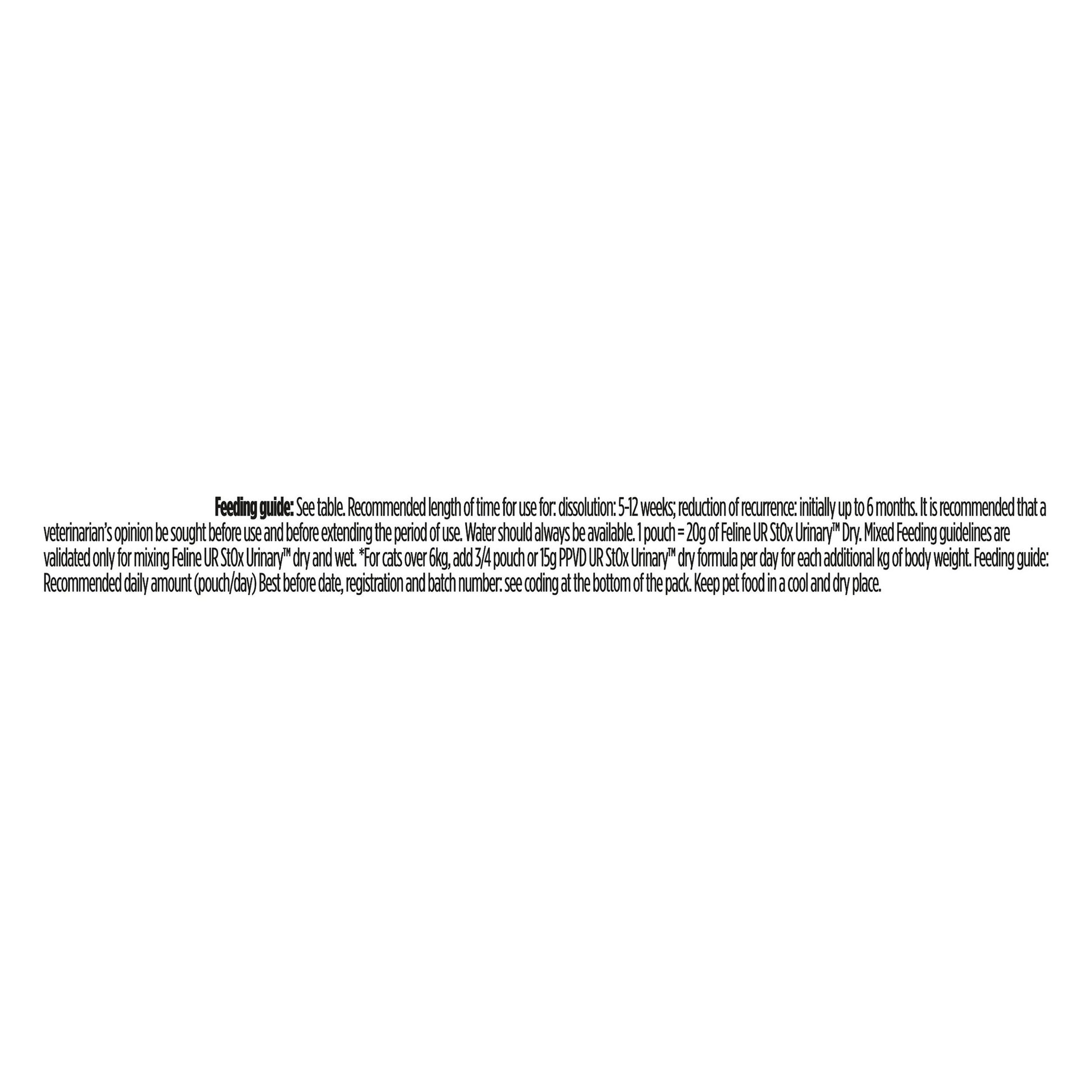 Complete dietetic pet food for adult cats for the dissolution of struvite stones and the reduction of struvite stone recurrence with urine acidifying properties and low level of magnesium.