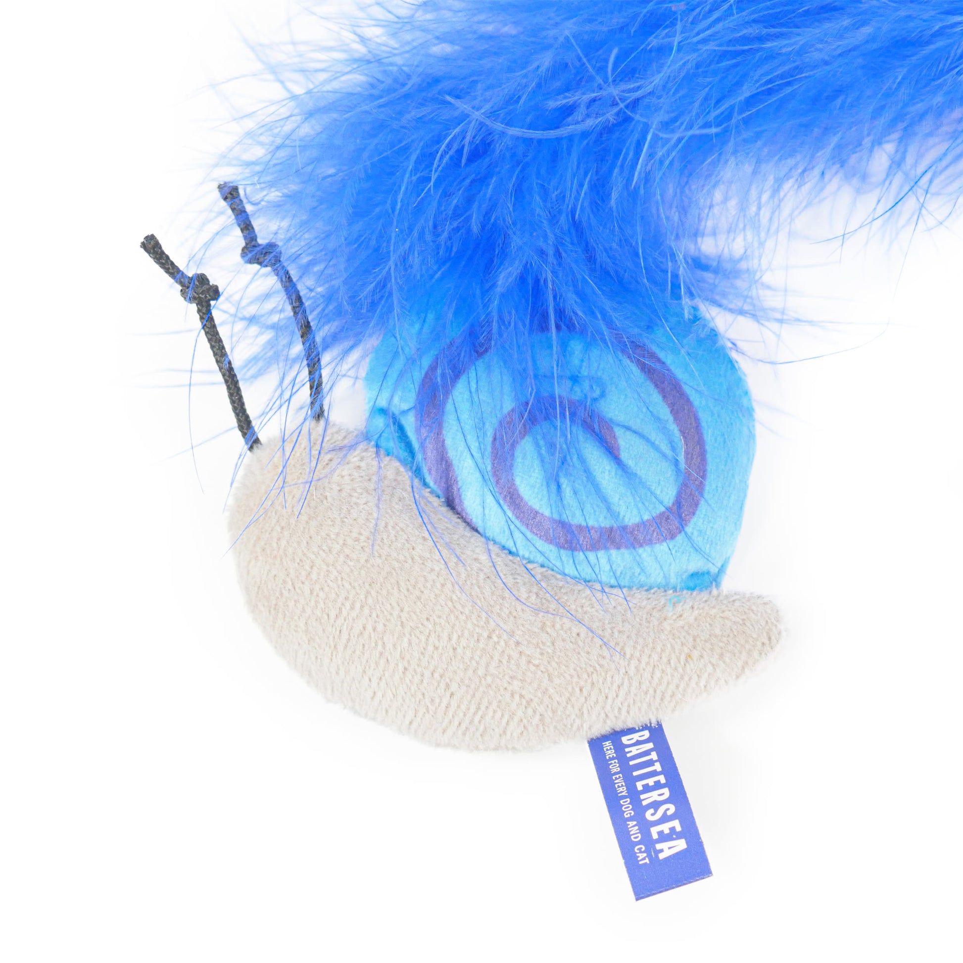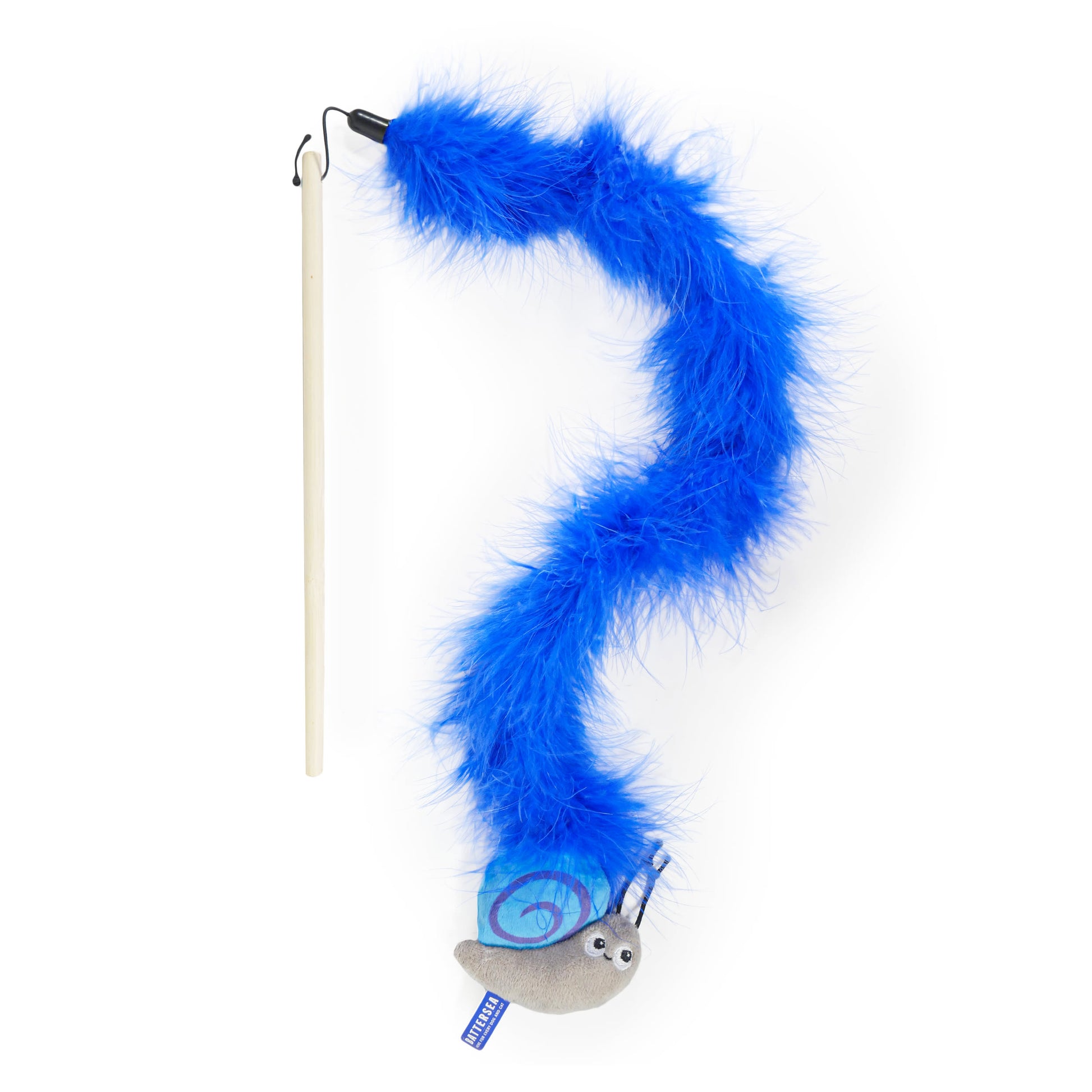 Captivating cat teaser with luxury coloured feather bower and stripe Battersea bug characters. Encourages pouncing and your cat’s natural hunting instincts, helping to keep them active. Features natural wood teaser wand.