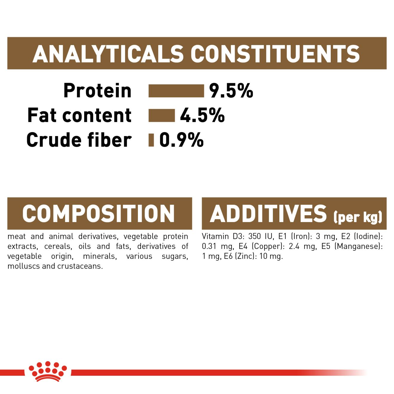 As your cat enters its senior years, its body – particularly its joints – will need even more support through nutrition to help maintain overall health. However, along with the changes in the type of nutrition your cat will require, the type of food it instinctively prefers will also change.To ensure that your senior cat (aged 12+) receives the specific nutrition it needs to help maintain optimal health, you will also need to feed it a diet that it will consume naturally and preferentially.Essentially, the right nutrition will only be able to support optimal health if it is within a food that is precisely crafted for regular and instinctive consumption. That's why Royal Canin® Ageing 12+ in Jelly is formulated to match the optimal Macro Nutritional Profile that is instinctively preferred by ageing cats like yours.The joint health of senior cats is paramount to their ability to partake in physical activity and maintain good overall health – which is why they typically need higher levels of nutritional support.Royal Canin® Ageing 12+ in Jelly provides senior cats with specially formulated food to help maintain healthy joints through a high level of Omega-3 fatty acids – specifically EPA and DHA.Royal Canin® Ageing 12+ in Jelly also contains an adapted phosphorus content to help support healthy kidney function and overall renal health.To cater to each cat's individual preferences, Royal Canin® Ageing 12+ is also available in a delicious gravy, or as dry food with tasty and crunchy kibble. If you're considering mixed feeding, simply follow our feeding guidelines to ensure your cat gets an accurate amount of both wet and dry food for optimal benefit. At Royal Canin® we're committed to providing nutritional solutions to your pet's needs. All of our products undergo an extensive quality control process in order to guarantee the optimum quality of food as well as catering to your cat's specific dietary requirements and lifestyle. This means that when your cat eats Royal Canin® Ageing 12+ in Jelly, it's getting a complete and balanced diet.