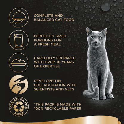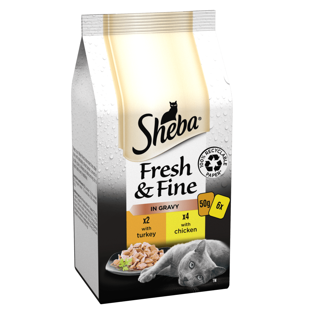 With the SHEBA Fresh & Fine cat food range it's easy to give your cat the tastes they love with a fine combination of delicate pieces providing complete nutrition for your feline companion. Made from select ingredients with no artificial colours or preservatives, a wonderful way to bring you and your feline friend closer at mealtimes. Available in 50g cat food pouches. Suitable for all cats over 12 months - adult and senior.